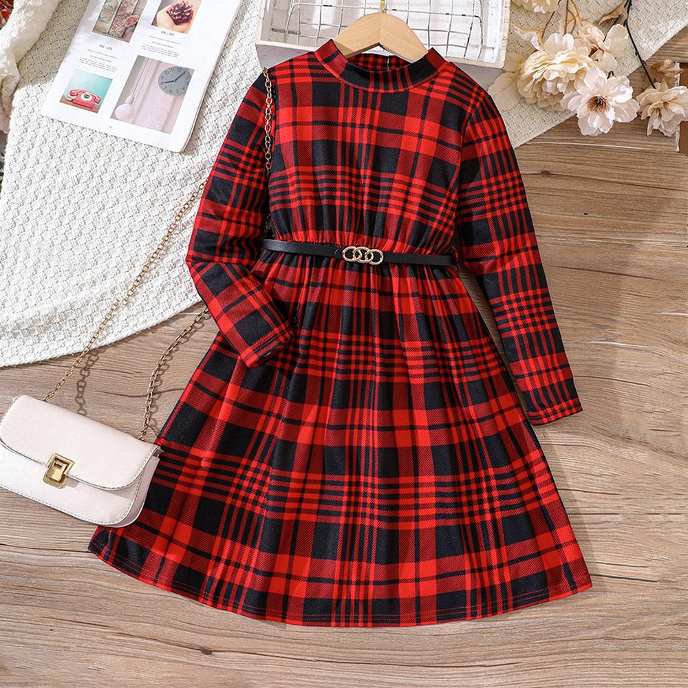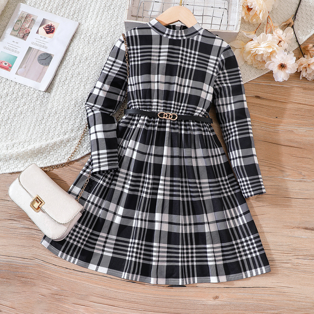 EW外贸童装 中大童新品女童春秋款长袖格条纹休闲连衣裙DQ1435-C
