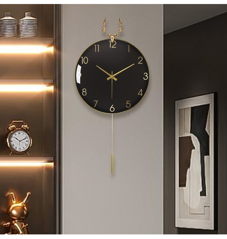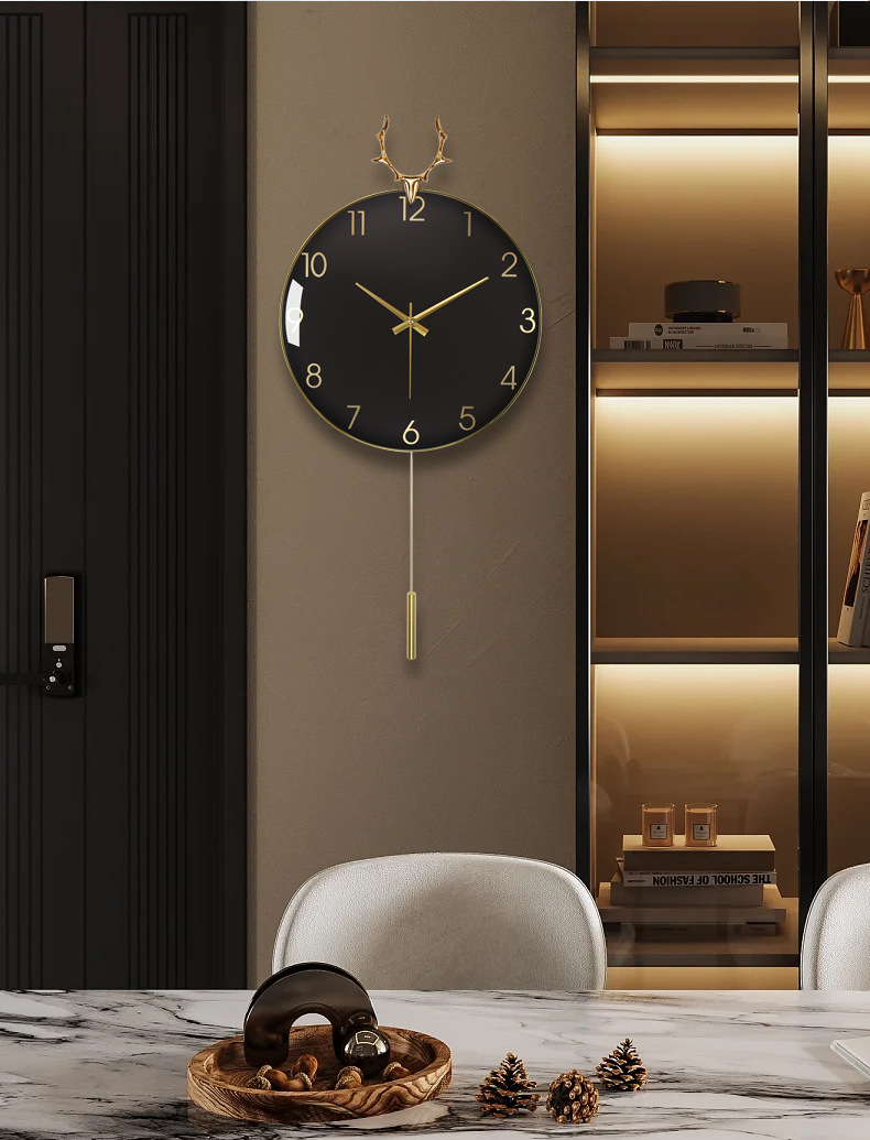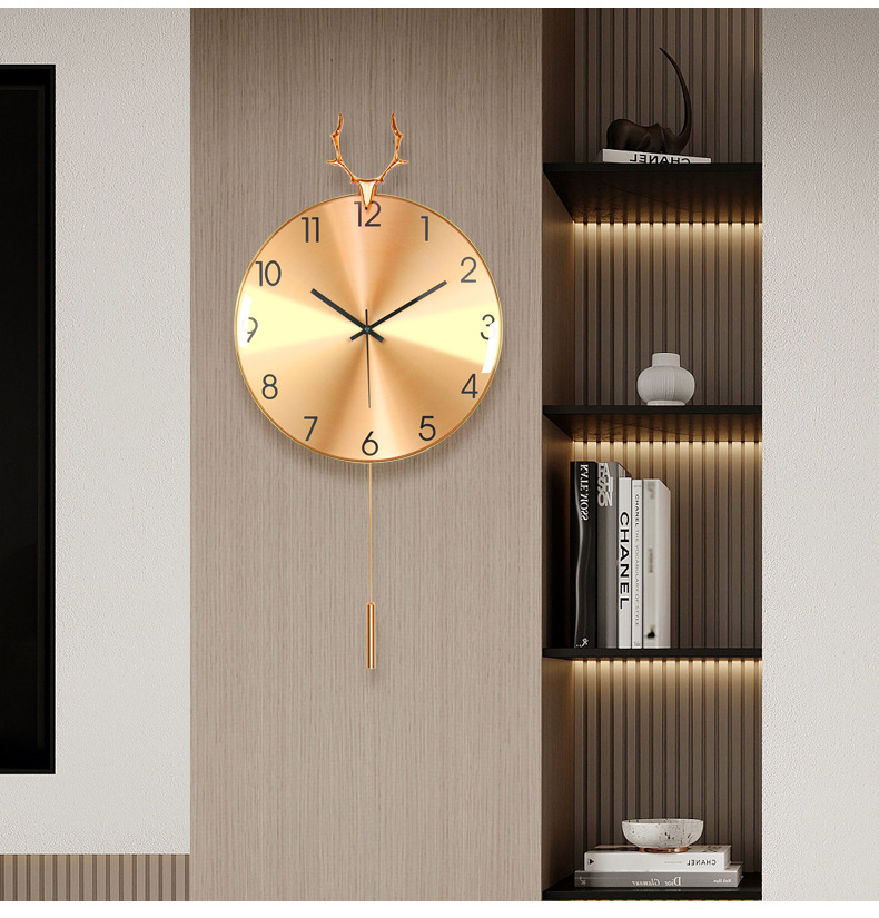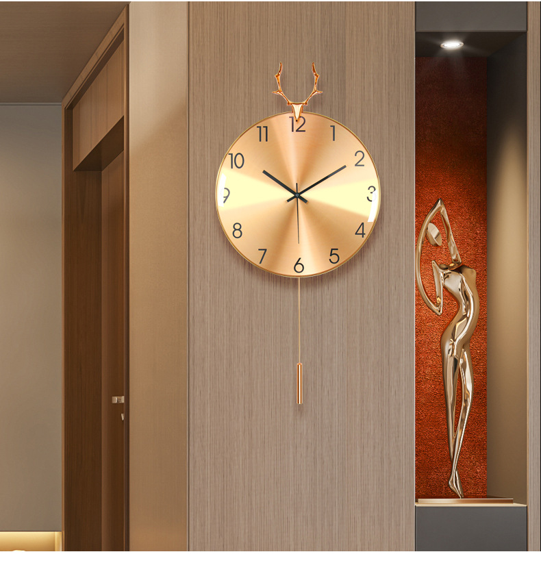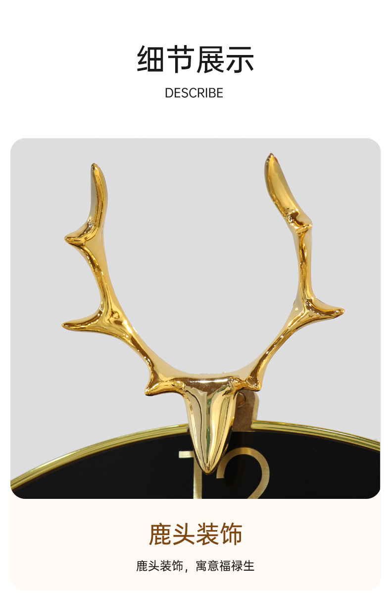 현대 조명 고급 벽시계 거실 시계 북유럽 알루미늄 합금 음소거 사슴 머리 시계 벽 금속 벽 시계 도매스토어 가기