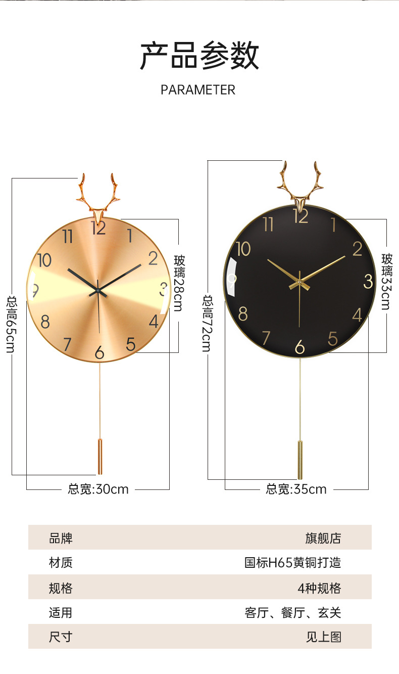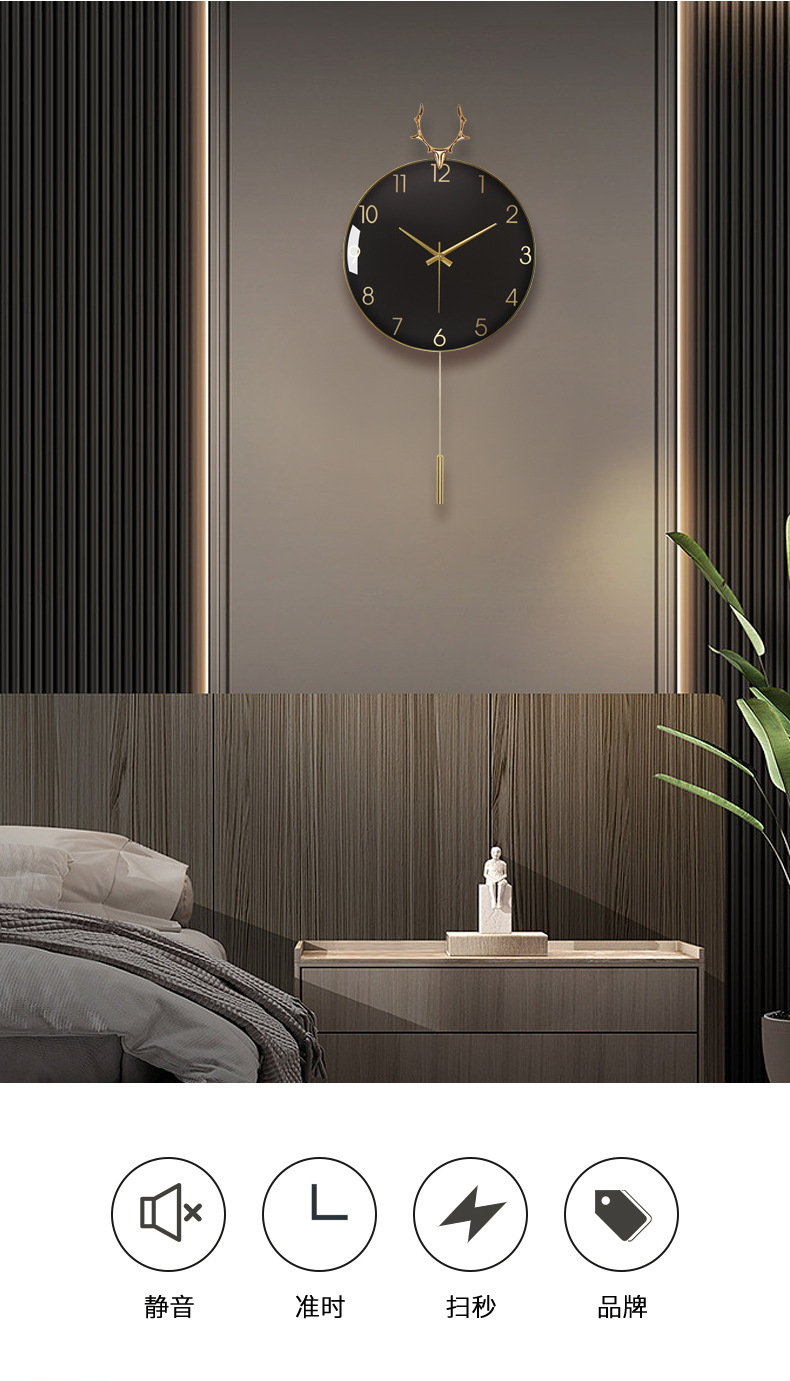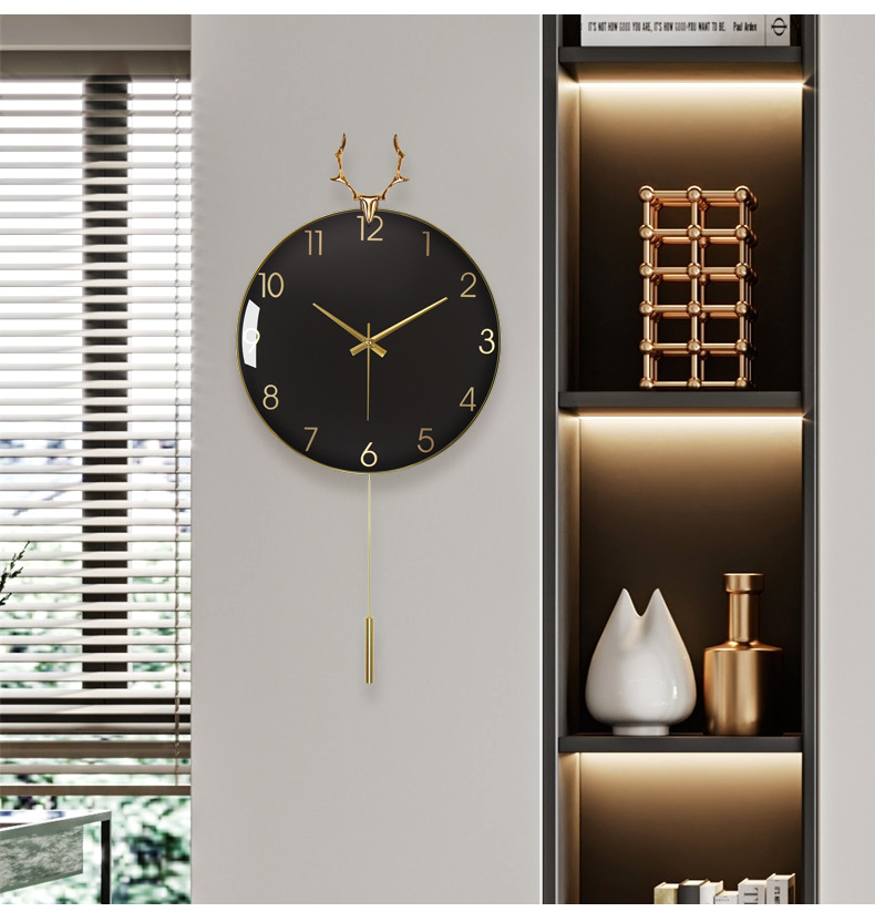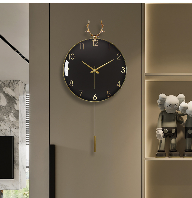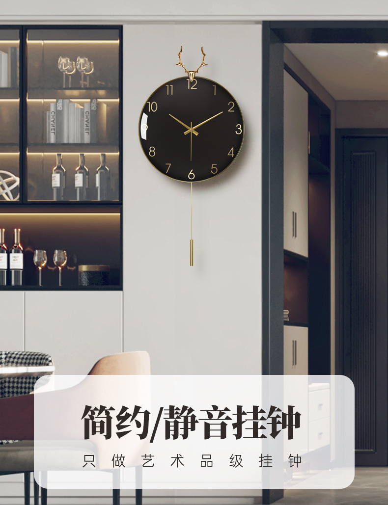 현대 조명 고급 벽시계 거실 시계 북유럽 알루미늄 합금 음소거 사슴 머리 시계 벽 금속 벽 시계 도매스토어 가기