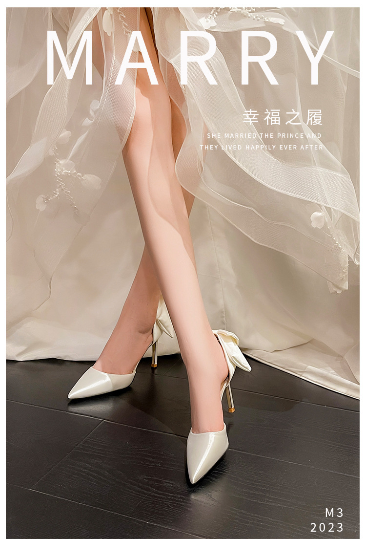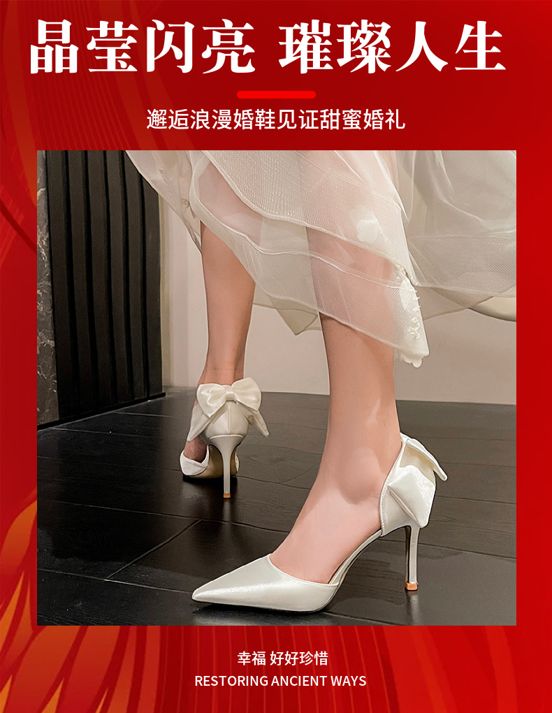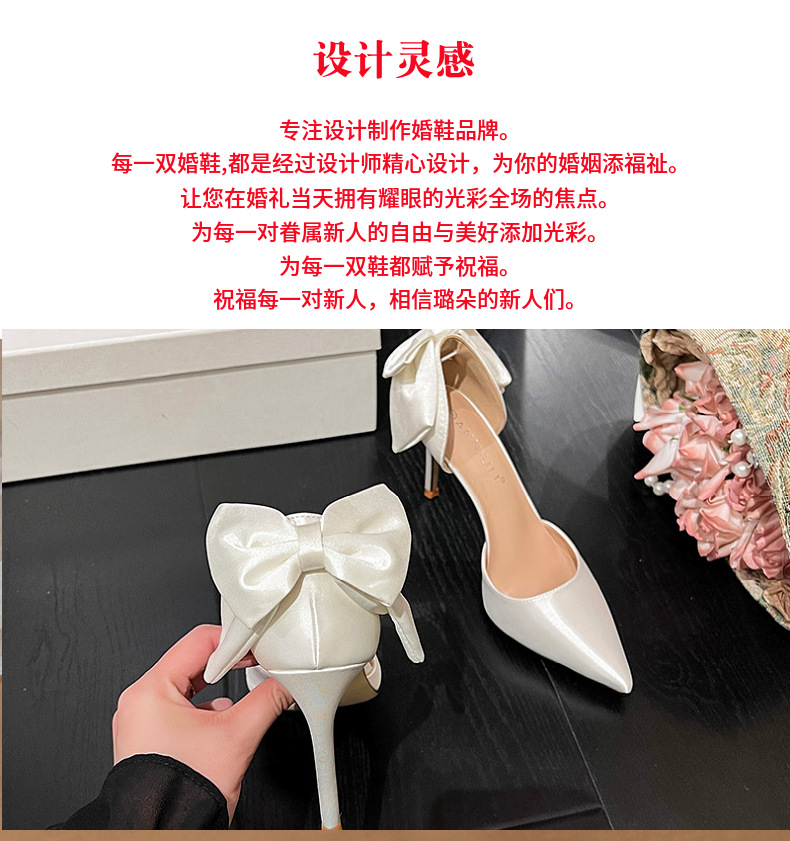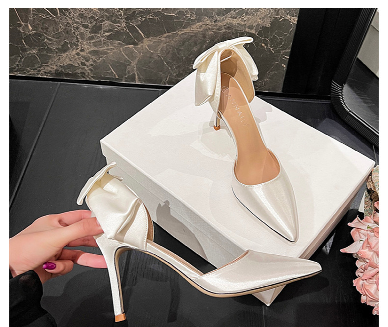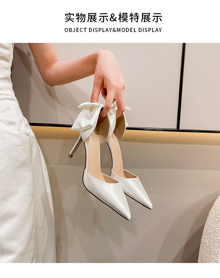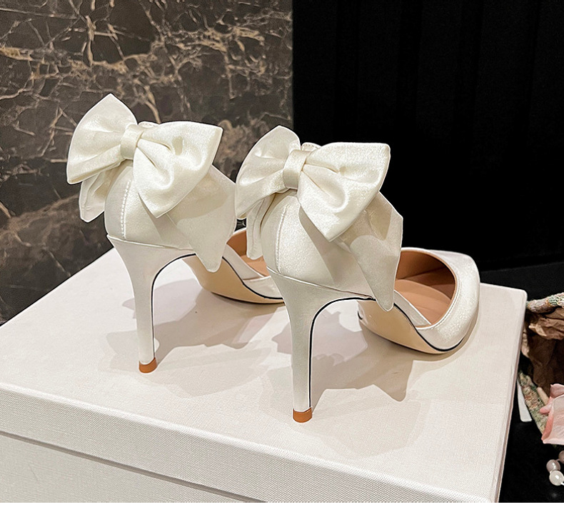 프랑스어 웨딩 신발 여자의 흰색 새틴 활 하이힐 스틸레토 섹시한 중공 샌들 원피스 웨딩 신발