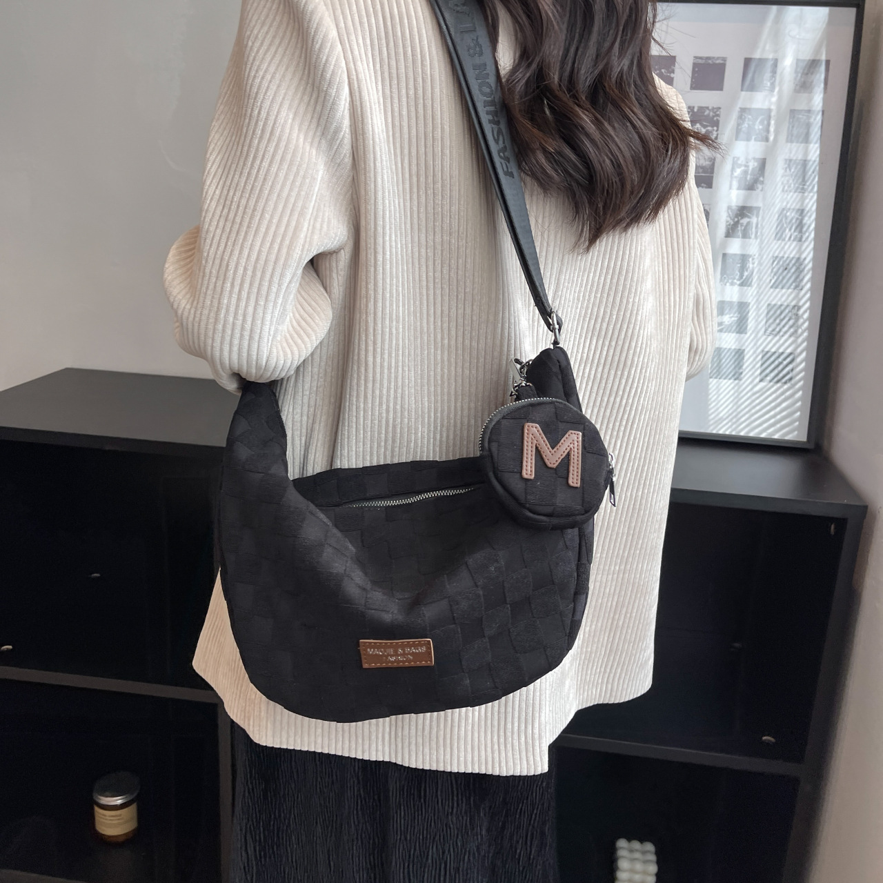틈새 디자인 캔버스 가방 여성 가방 2023 새로운 패션 광대역 크로스 바디 가방 폭발 격자 무늬 어깨 만두 가방