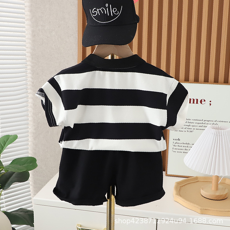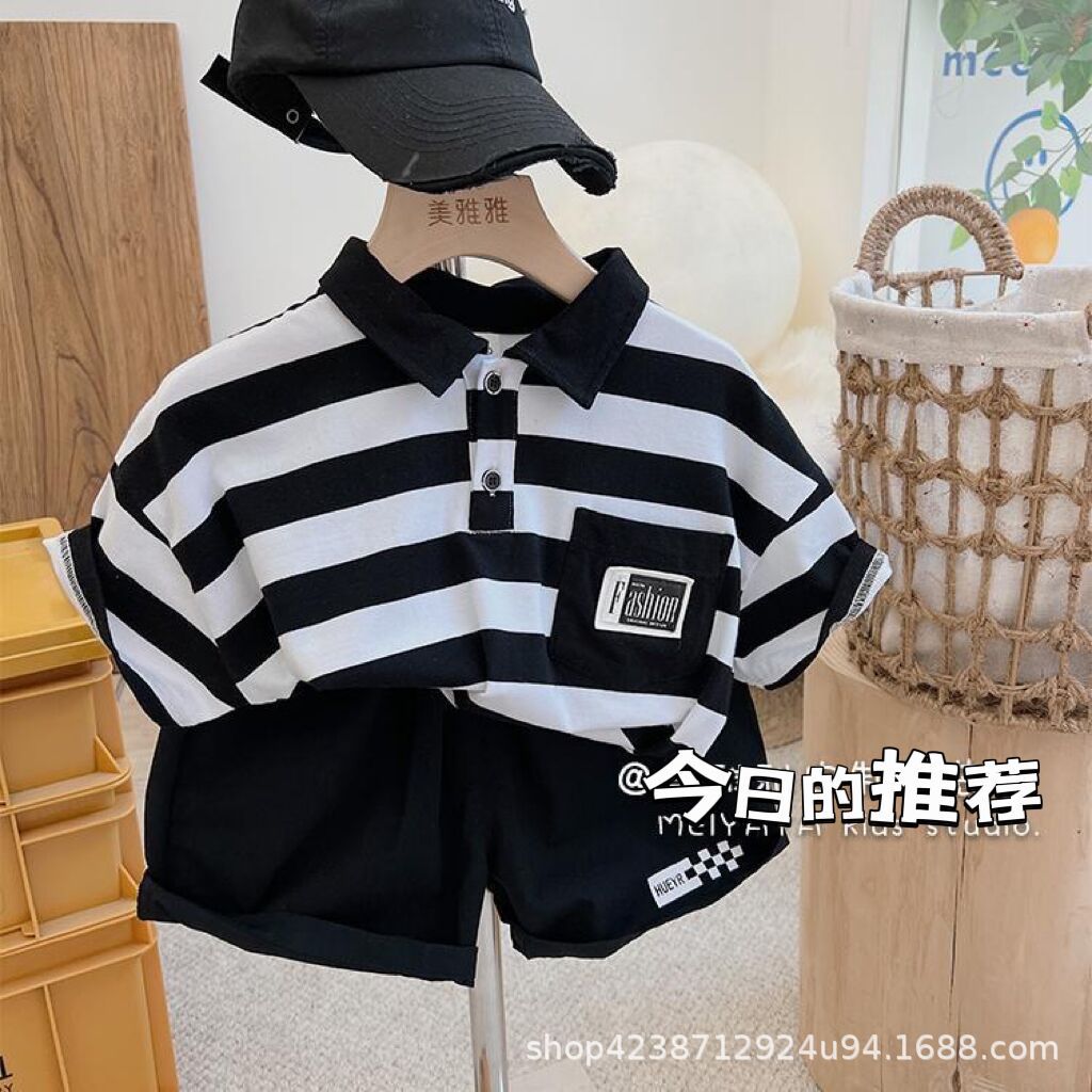 남아 여름 반팔 폴로 셔츠 세트 2023 한국 스타일 신상품 면 스트라이프 세련된 릴 남성 보물 반바지 트렌디스토어 가기