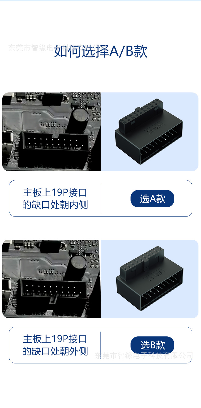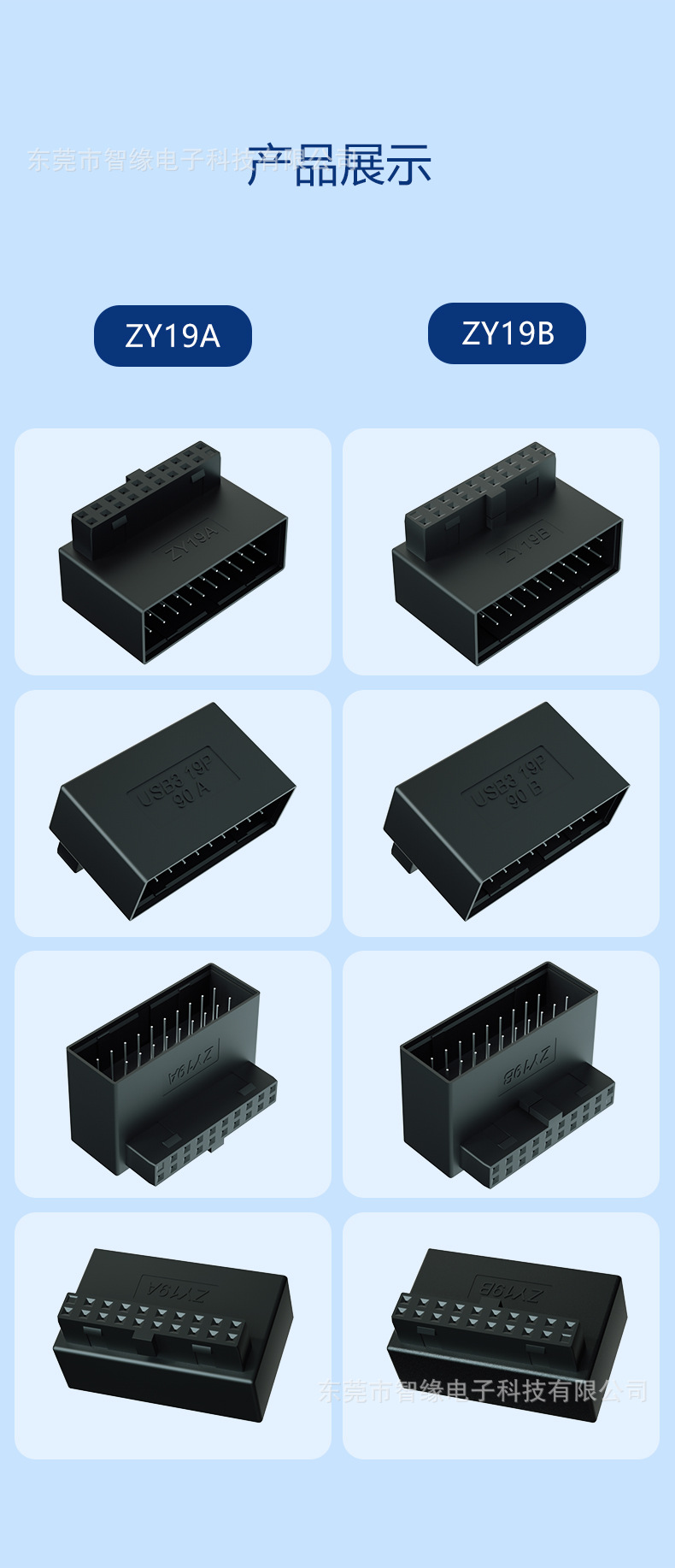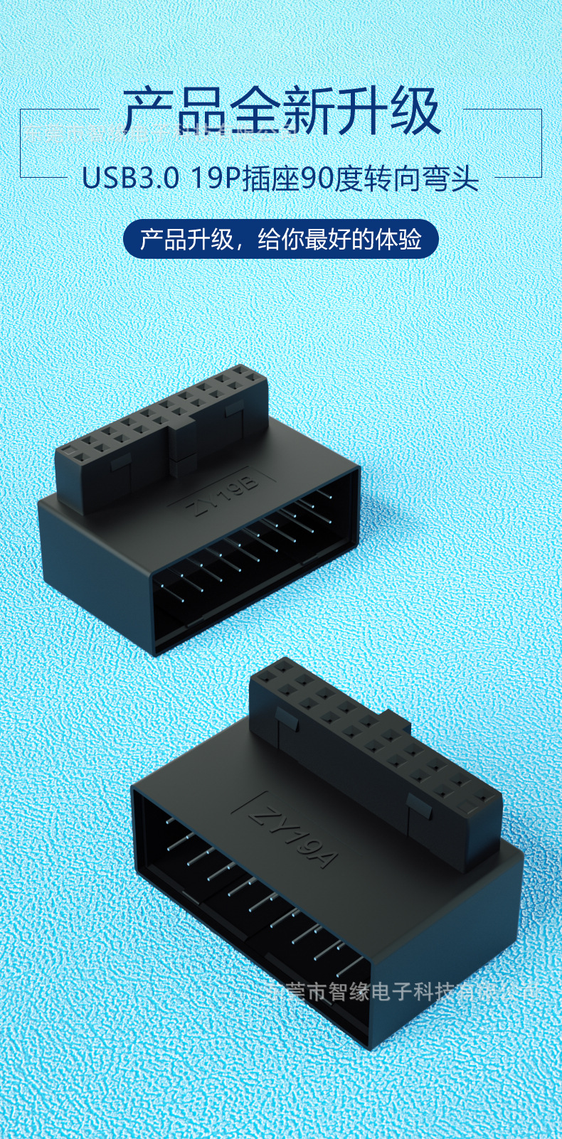 데스크탑 컴퓨터 마더 보드 USB3.019P/20p 소켓 스티어링 헤드 90 도 IDC 설치 액세서리 라우팅 커넥터