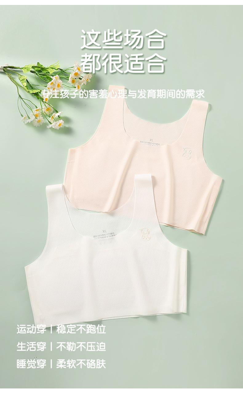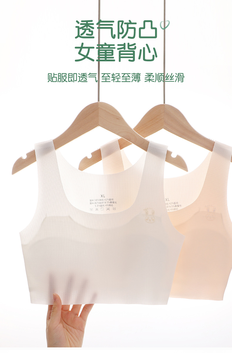 여름용 여아용 속옷, 발달기 초등학생용 1단계 조끼형 브라, 12세 어린이용 무봉제 브라