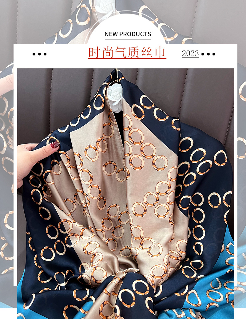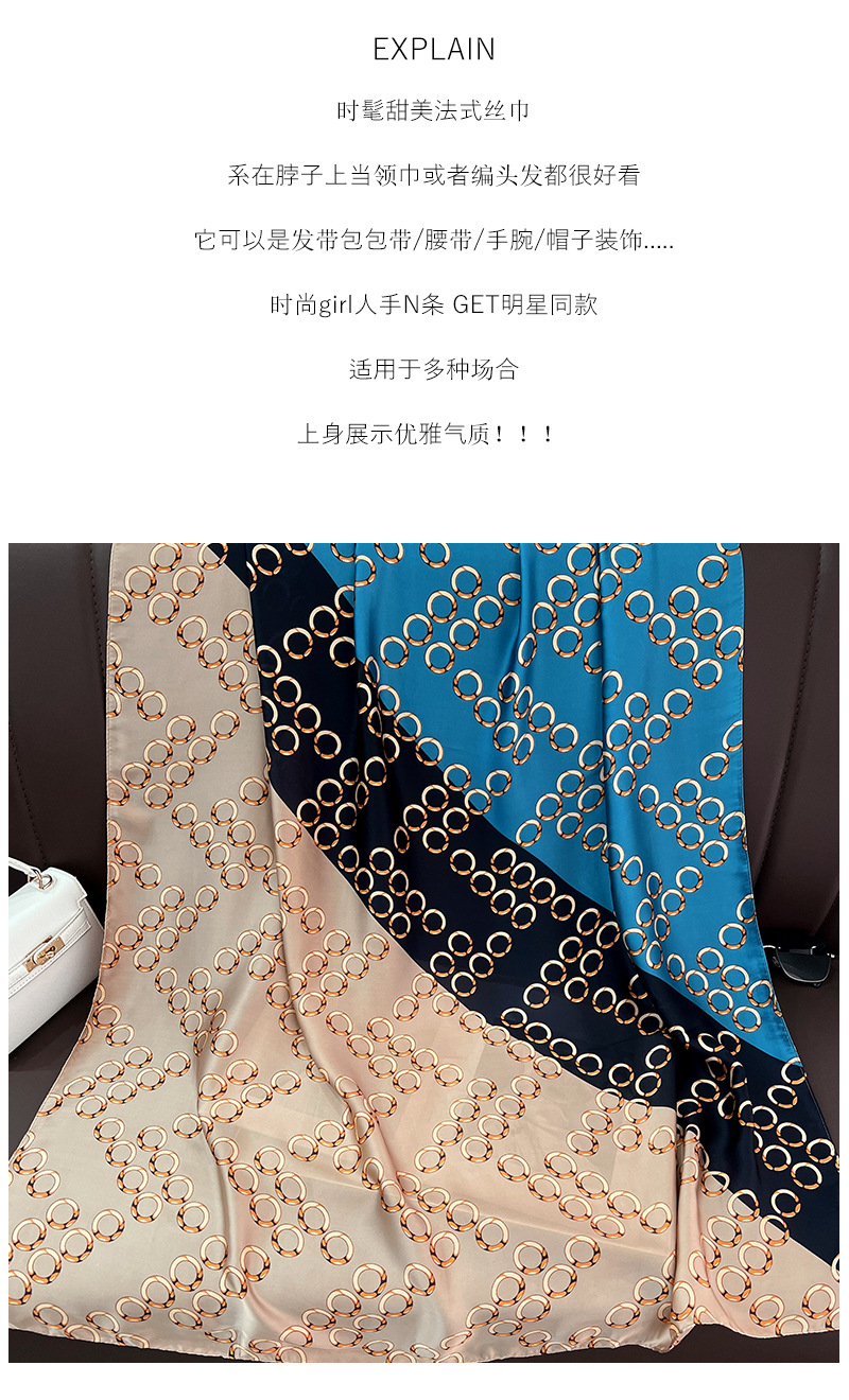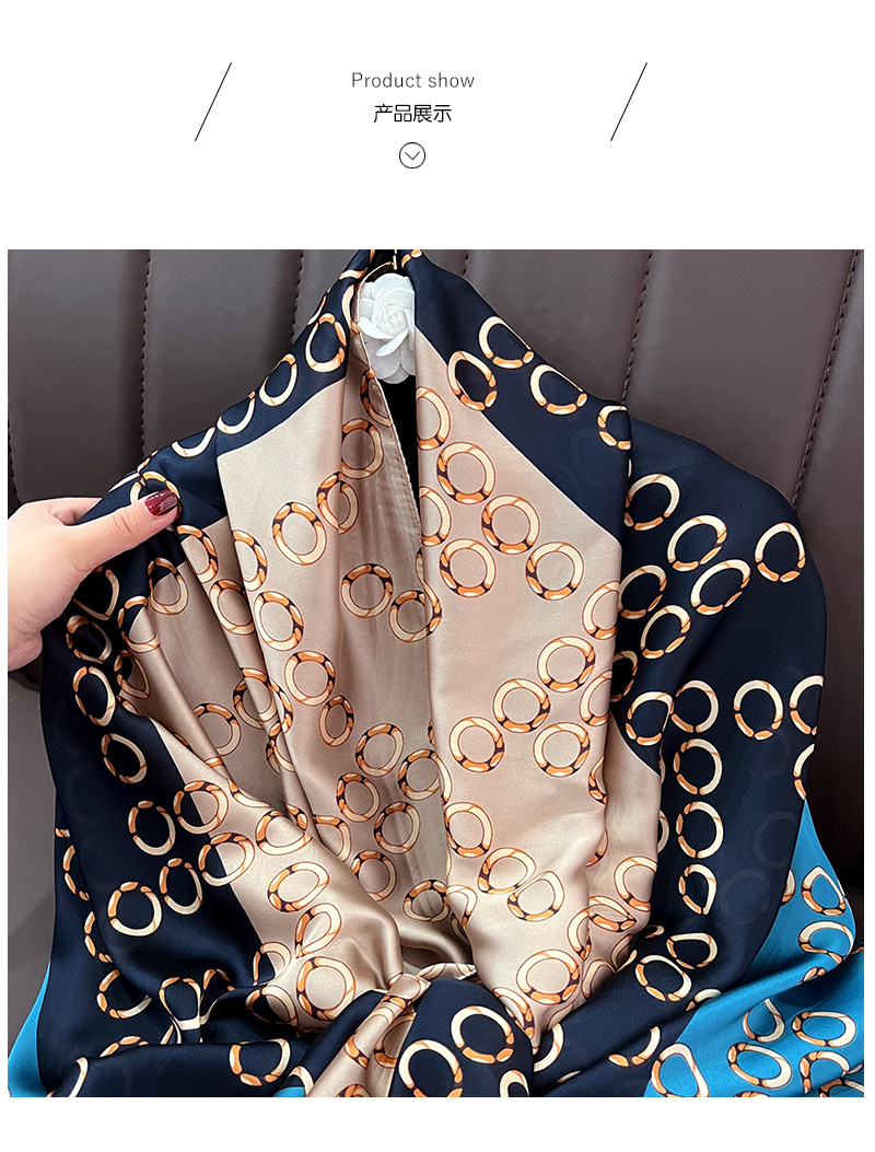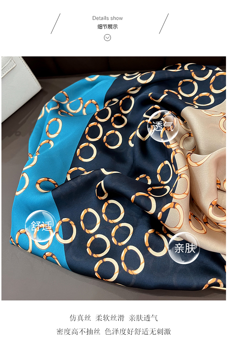 라이트 럭셔리 메탈 링 블루 대형 롱 스카프 고급 자외선 차단제 롱 프린트 실크 스카프 모조 롱 스카프스토어 가기