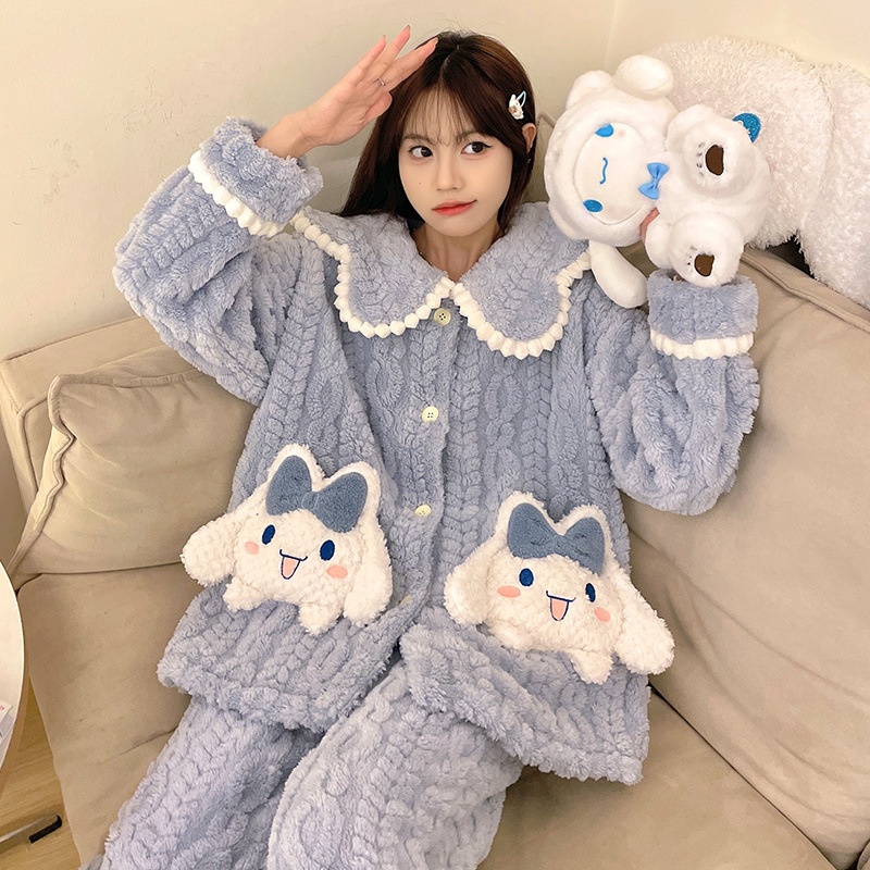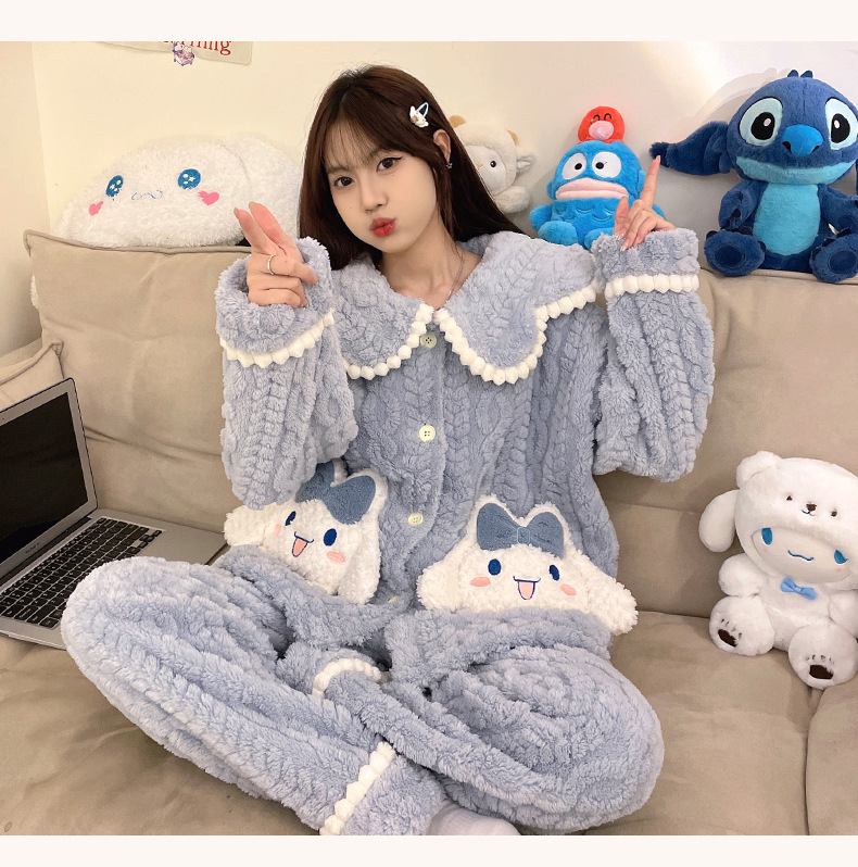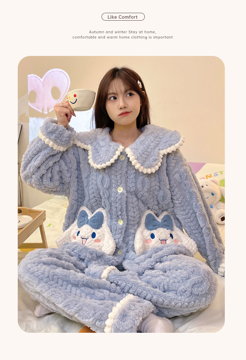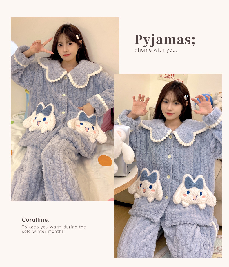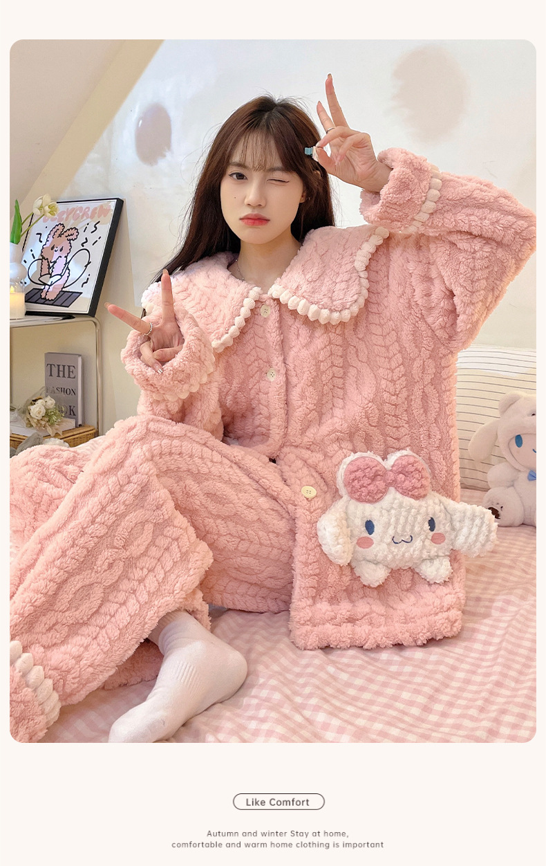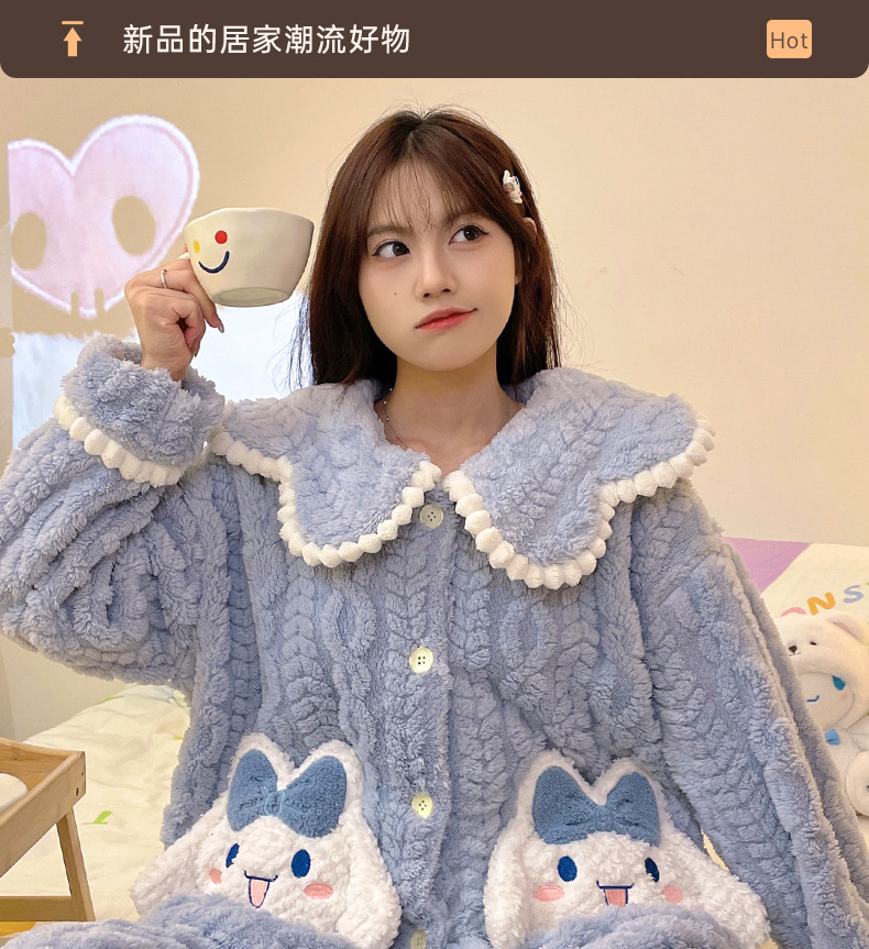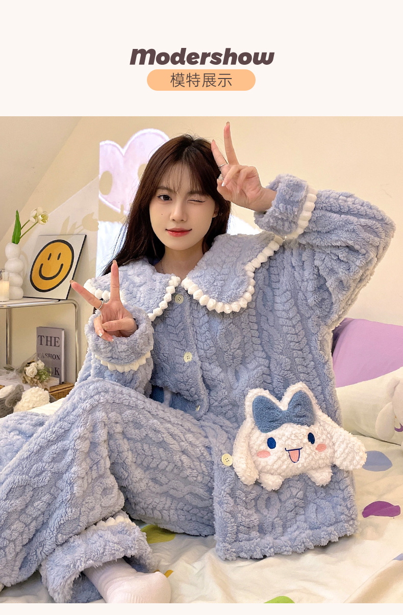 가을 겨울 여성용 산호 벨벳 잠옷, 귀여운 만화 캐릭터, 벨벳 소재의 두꺼운 공주풍 플란넬 홈웨어 세트스토어 가기