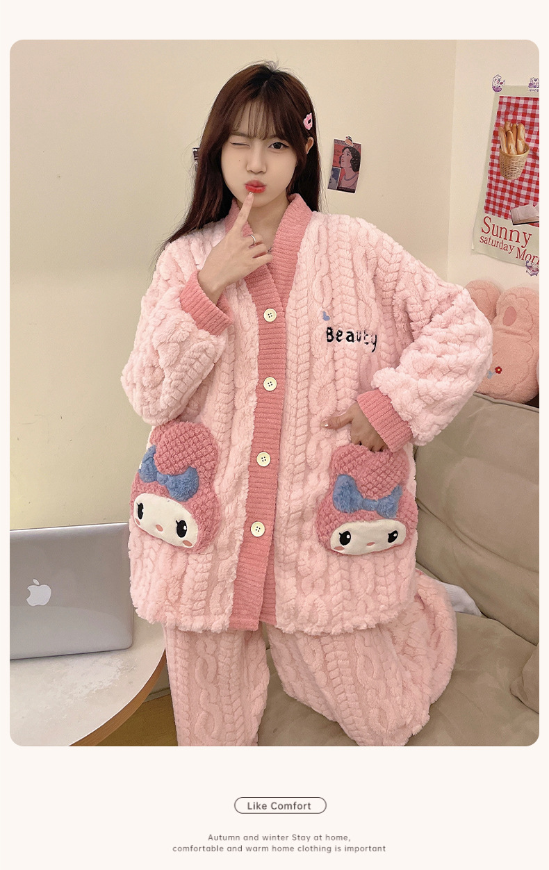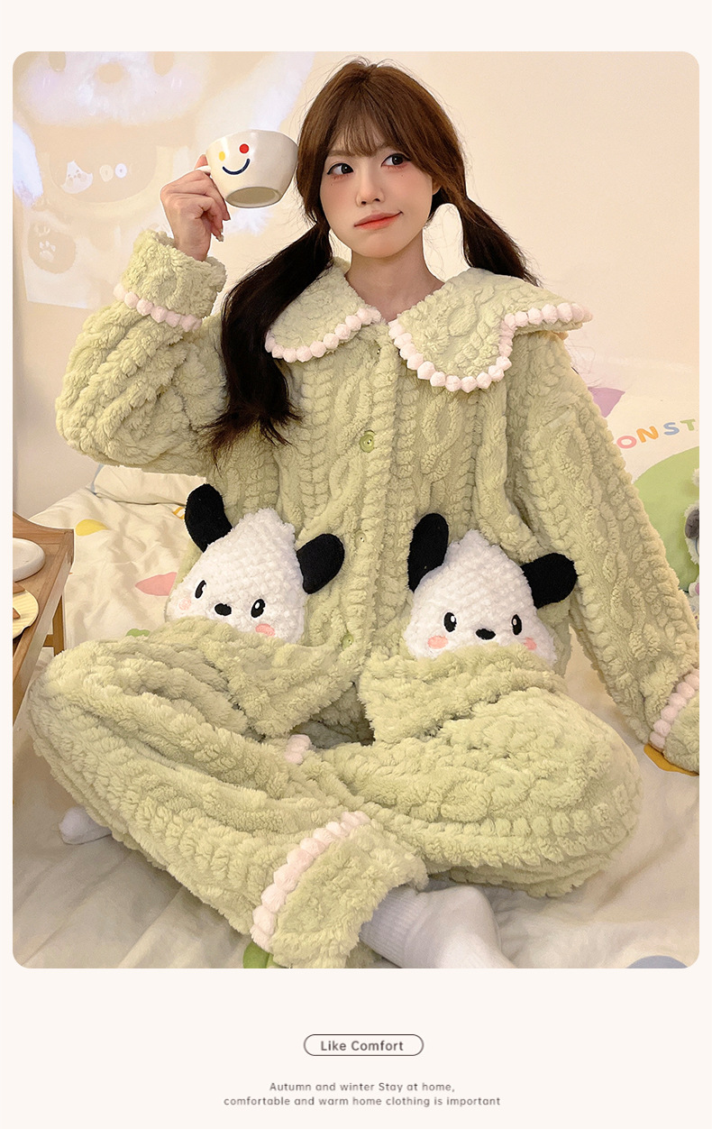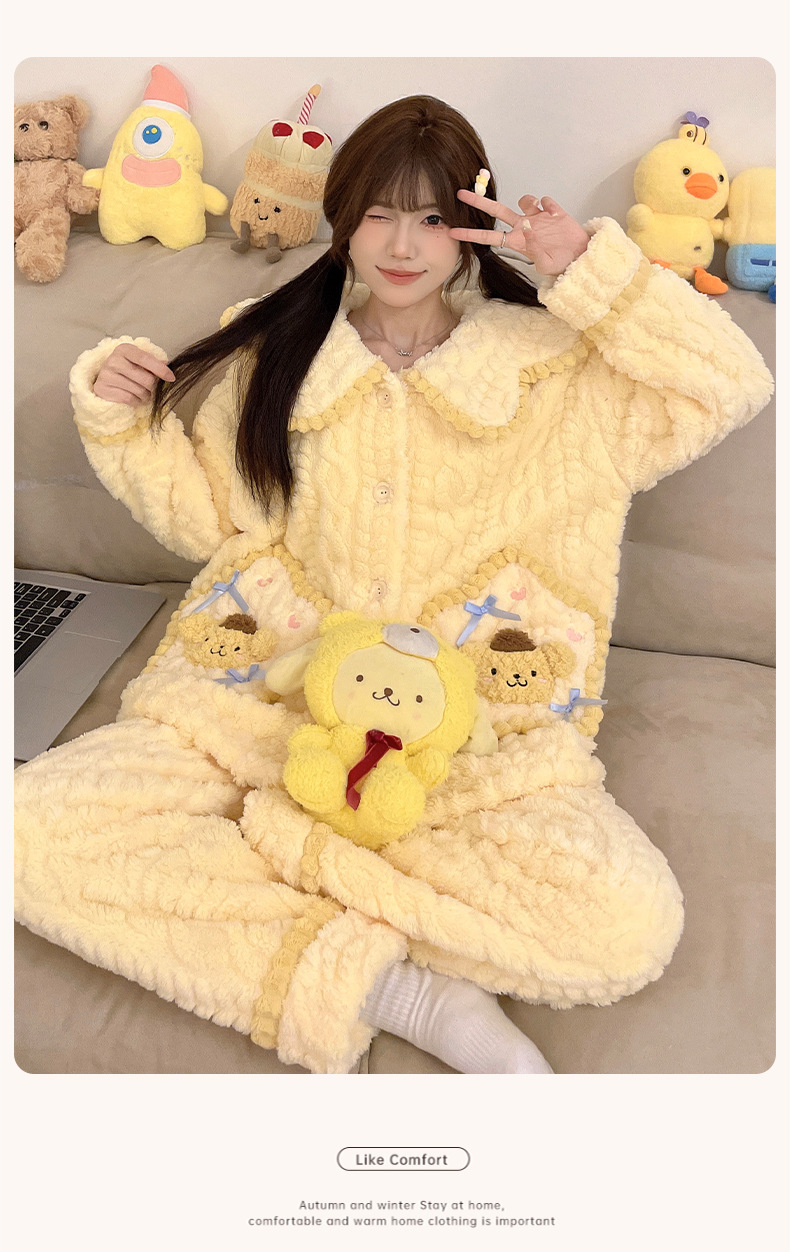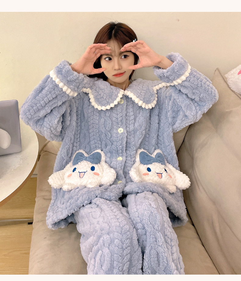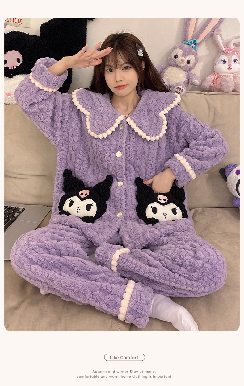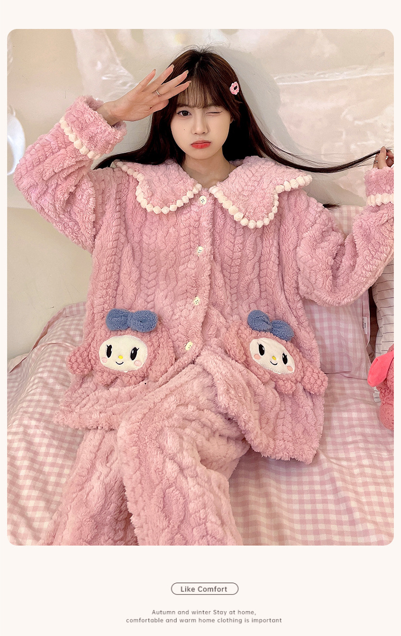 가을 겨울 여성용 산호 벨벳 잠옷, 귀여운 만화 캐릭터, 벨벳 소재의 두꺼운 공주풍 플란넬 홈웨어 세트스토어 가기