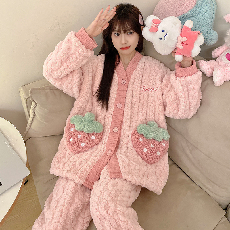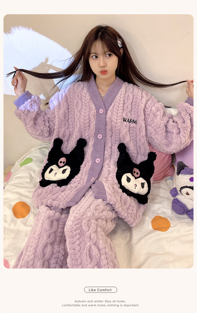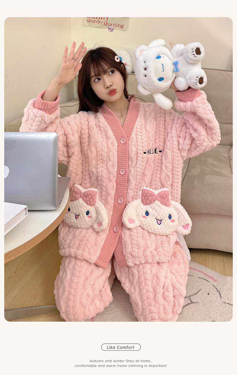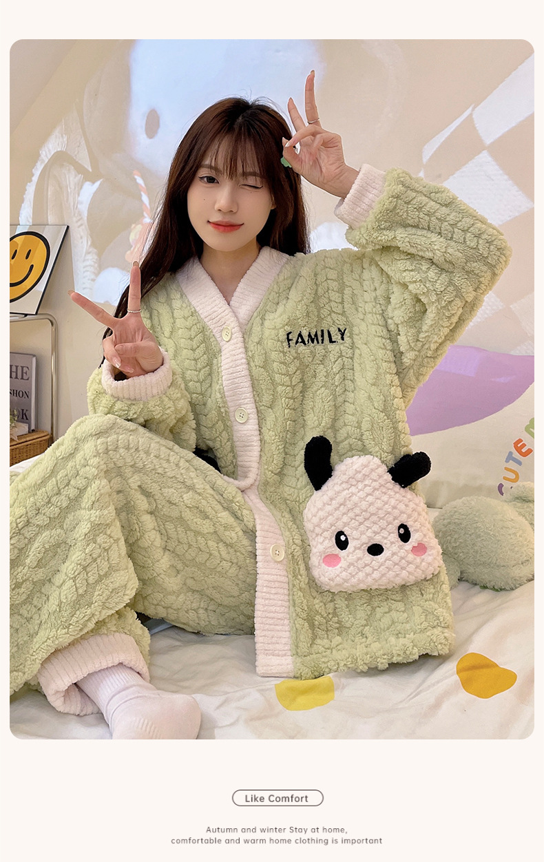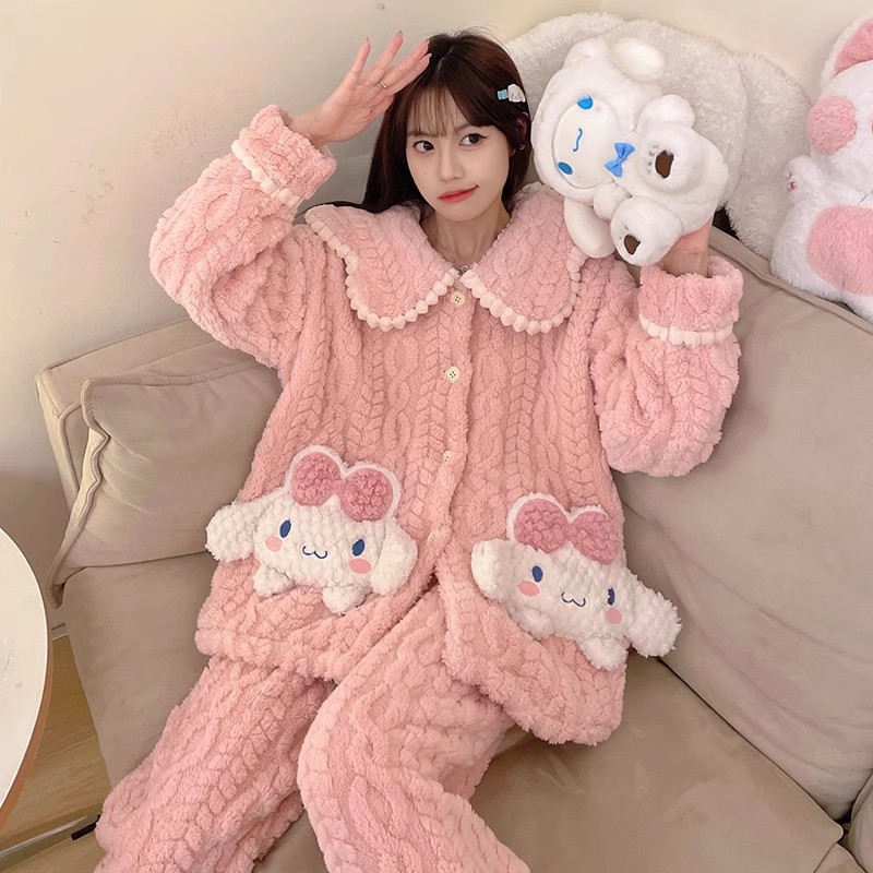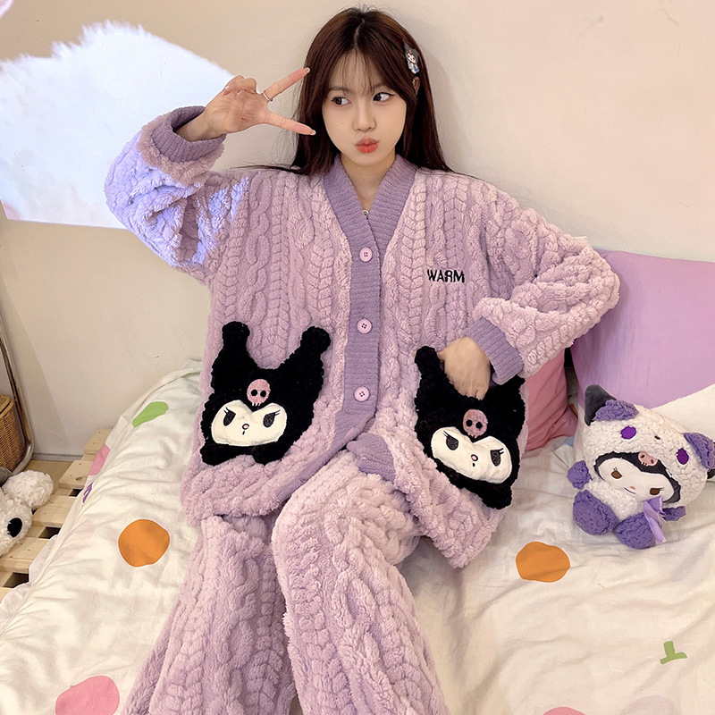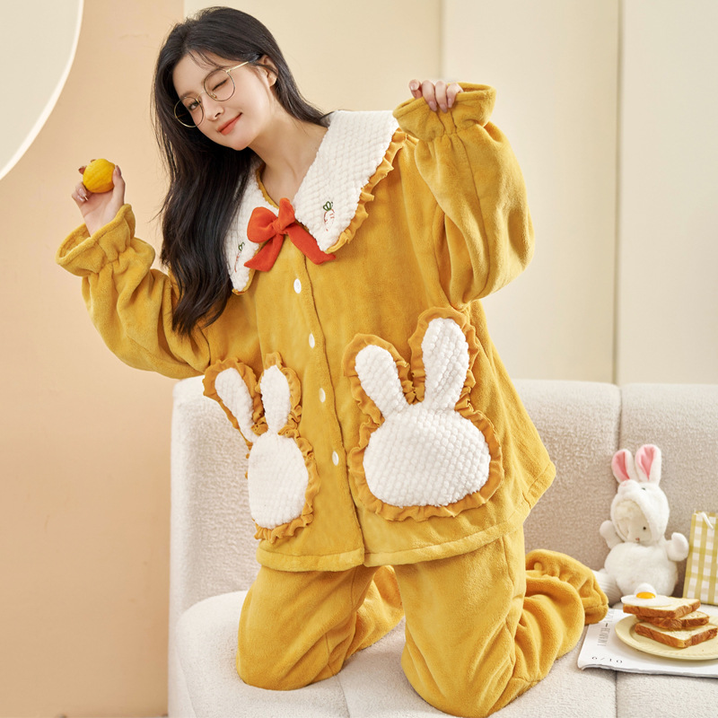 가을 겨울 여성용 산호 벨벳 잠옷, 귀여운 만화 캐릭터, 벨벳 소재의 두꺼운 공주풍 플란넬 홈웨어 세트스토어 가기
