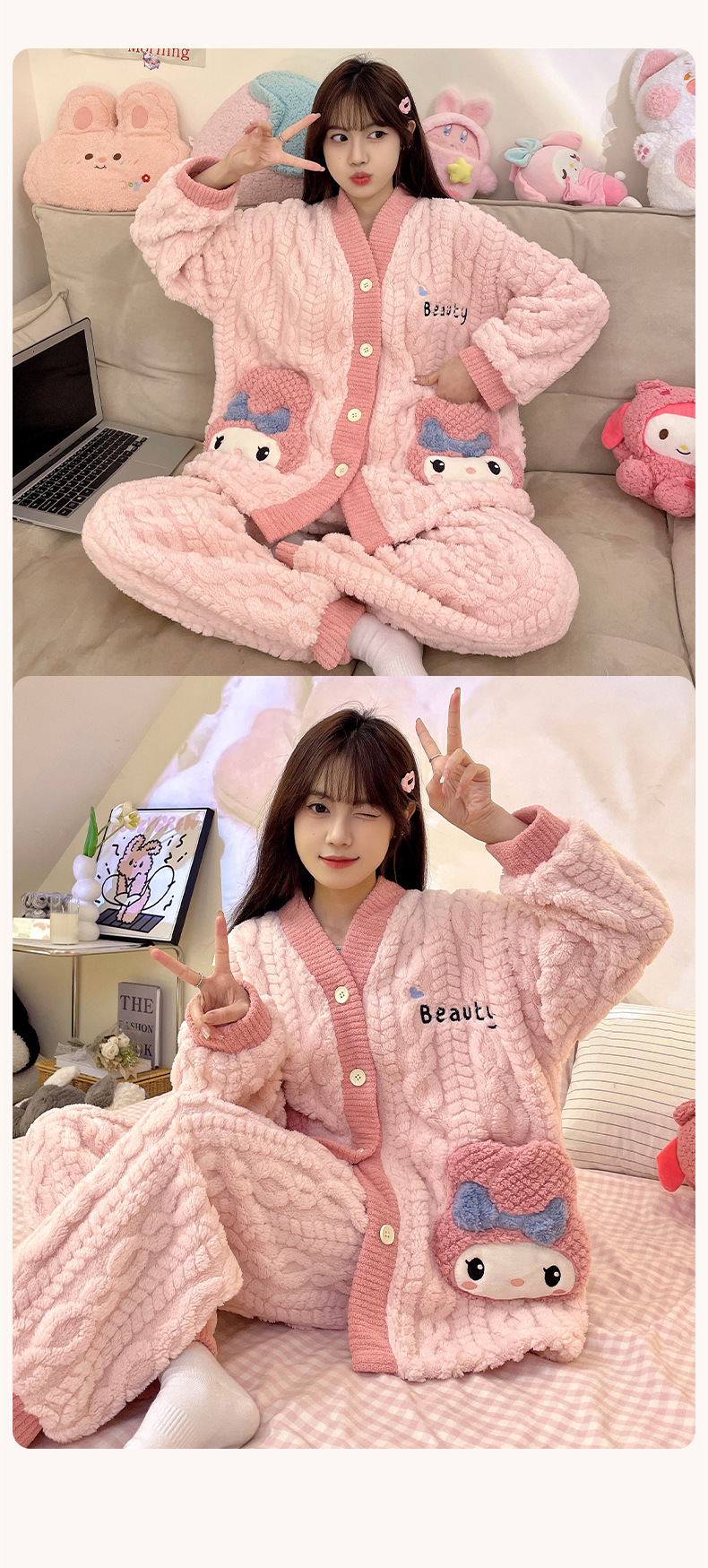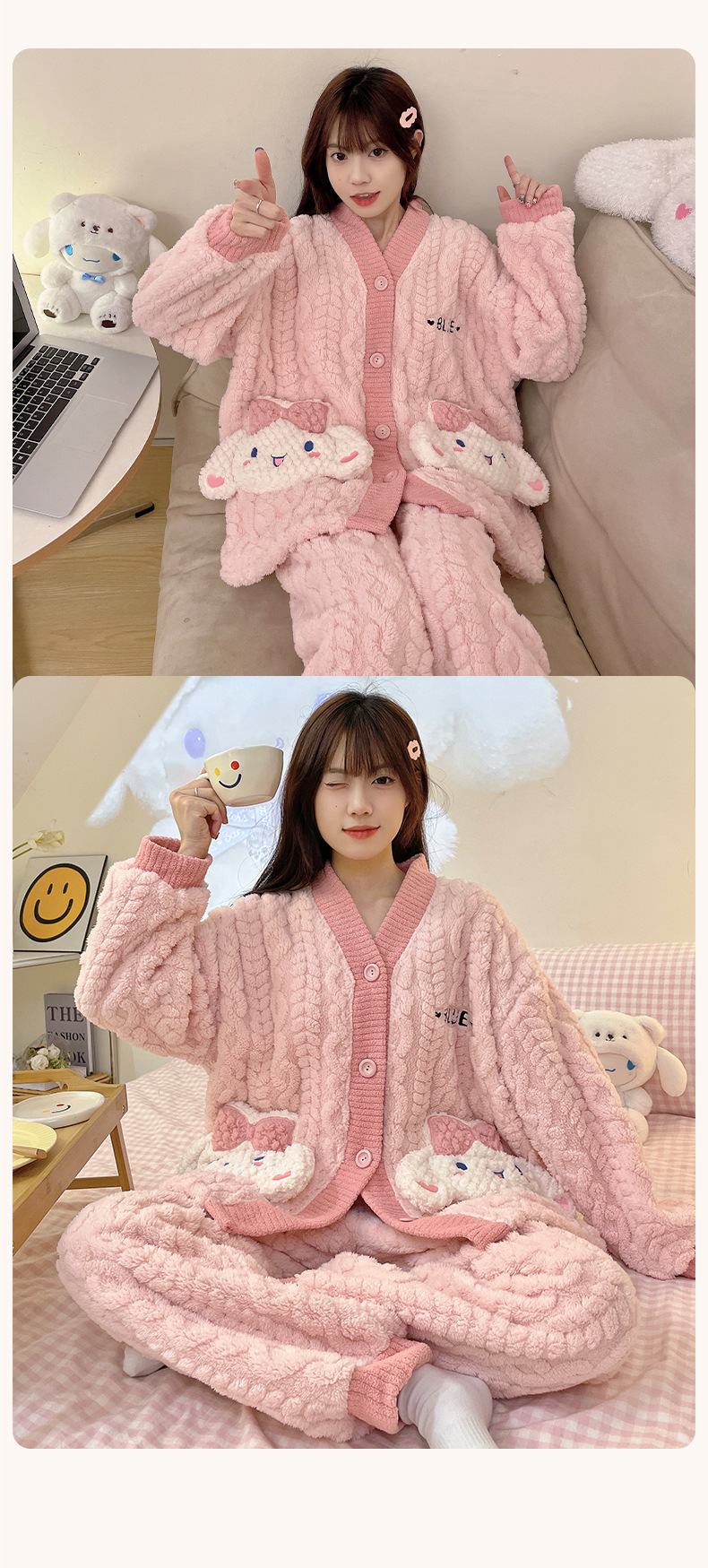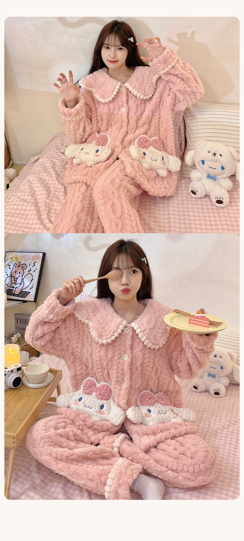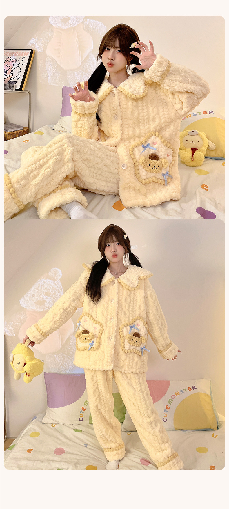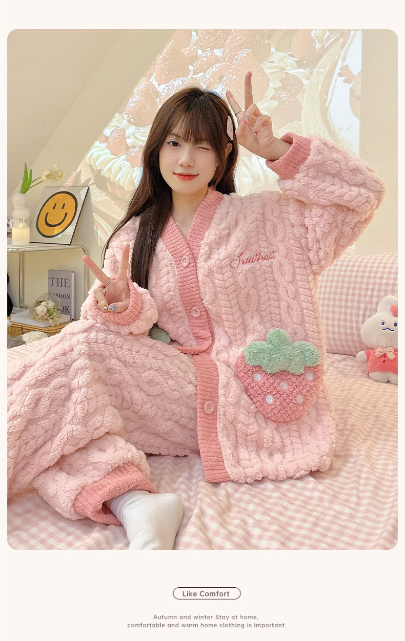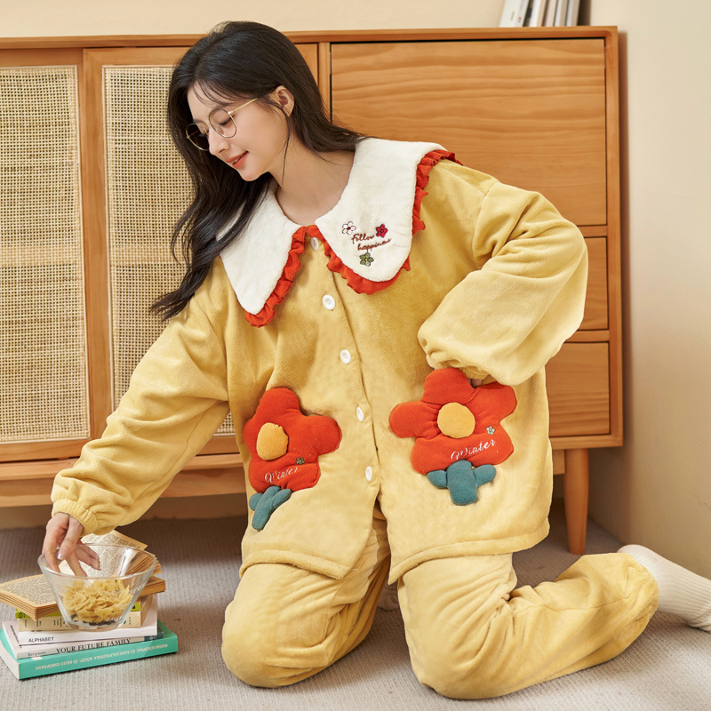 가을 겨울 여성용 산호 벨벳 잠옷, 귀여운 만화 캐릭터, 벨벳 소재의 두꺼운 공주풍 플란넬 홈웨어 세트스토어 가기