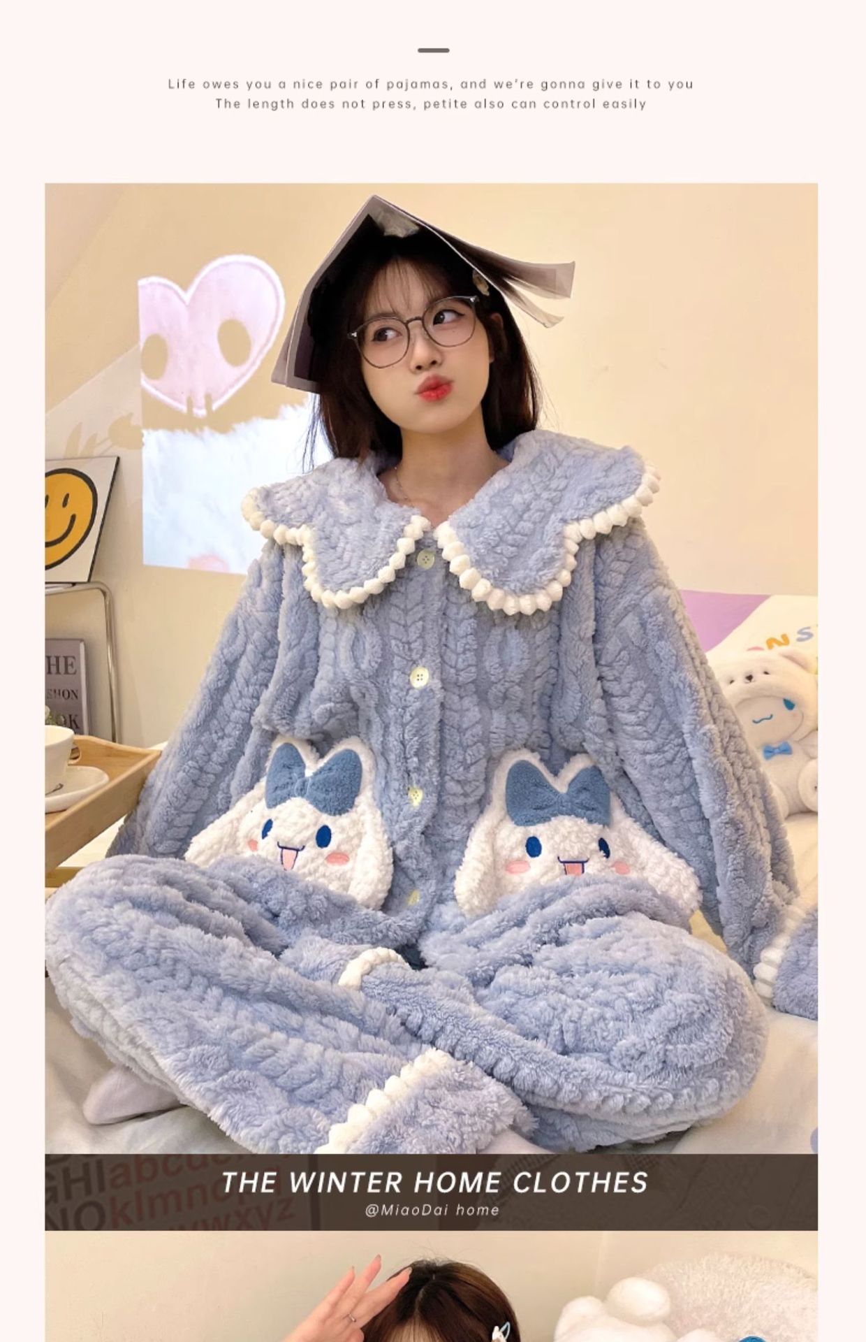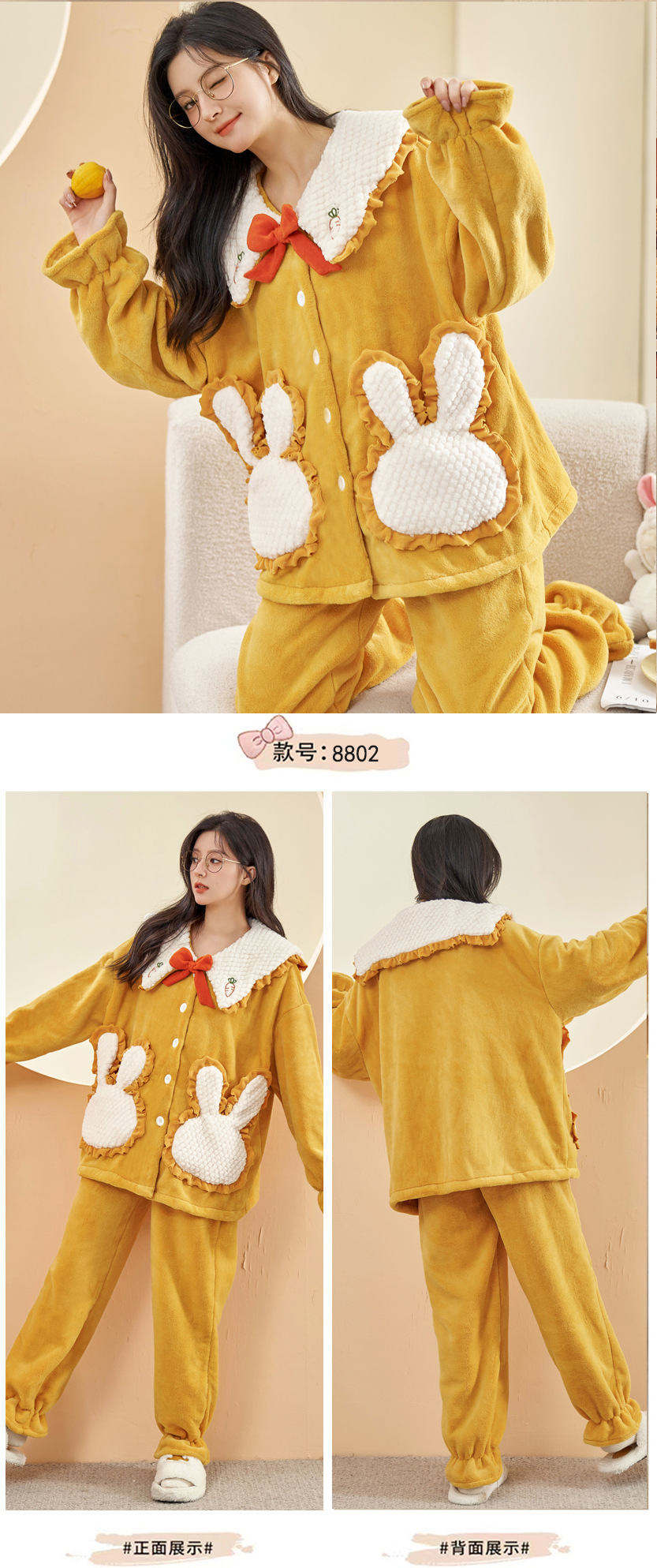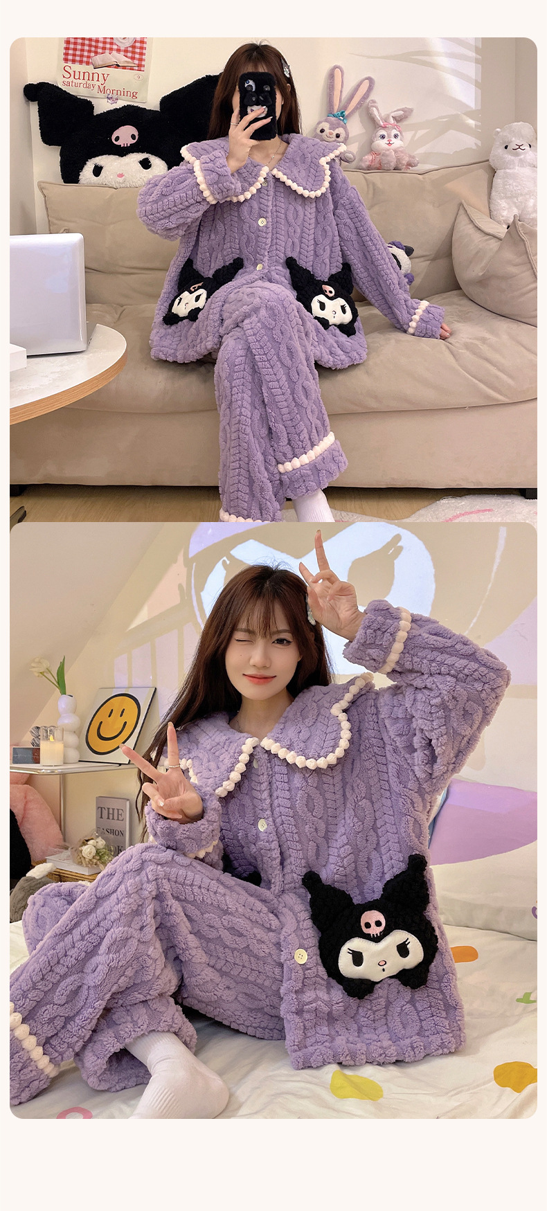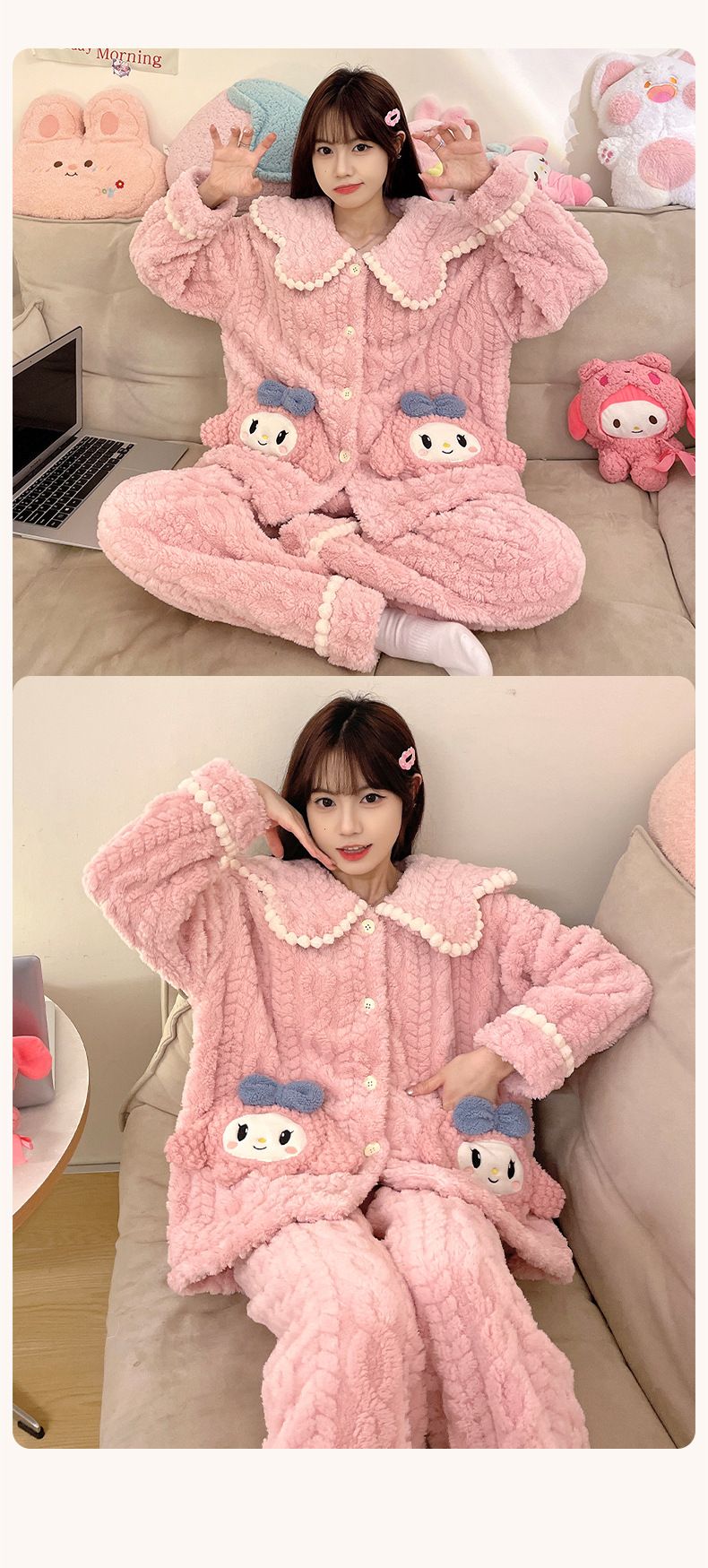 가을 겨울 여성용 산호 벨벳 잠옷, 귀여운 만화 캐릭터, 벨벳 소재의 두꺼운 공주풍 플란넬 홈웨어 세트스토어 가기