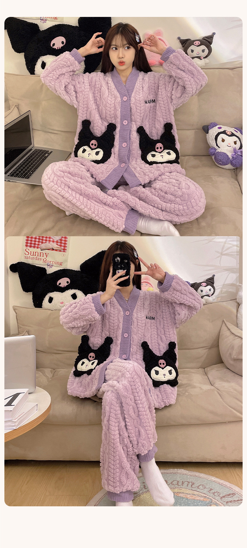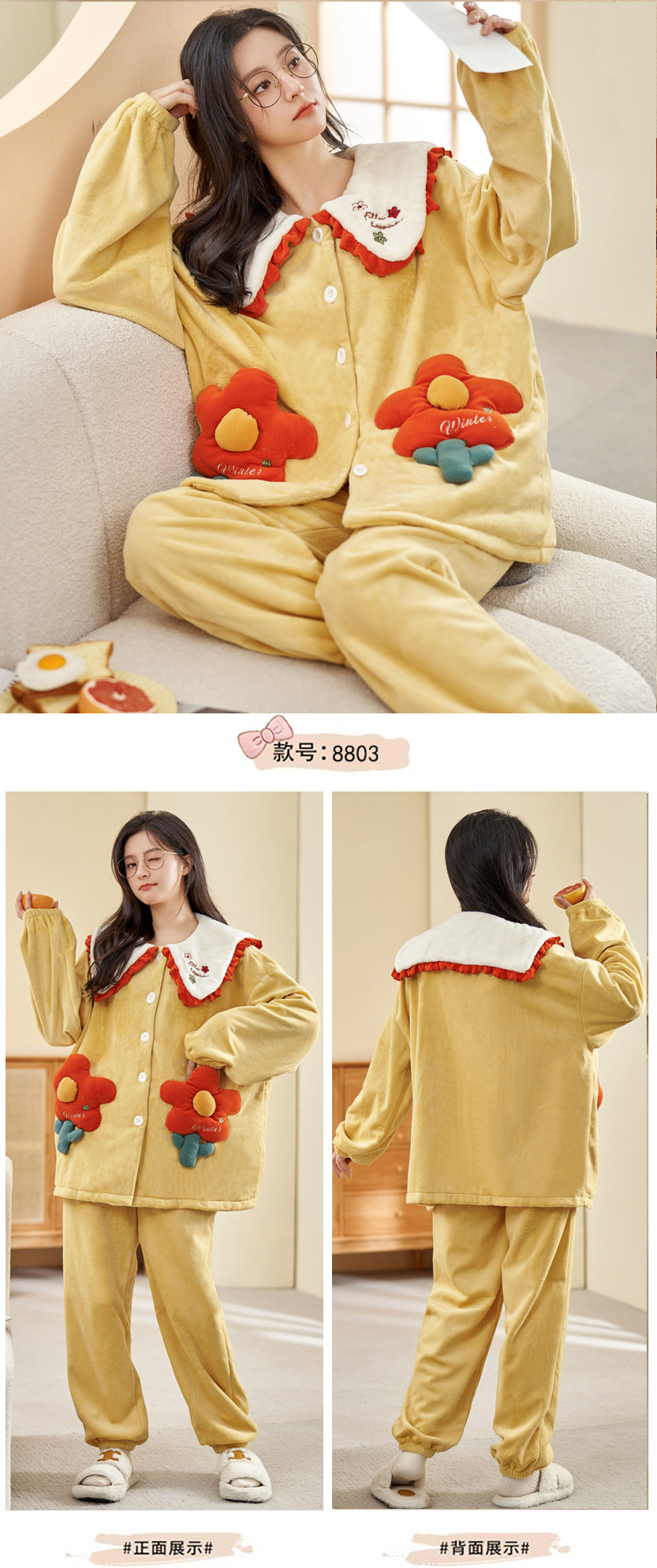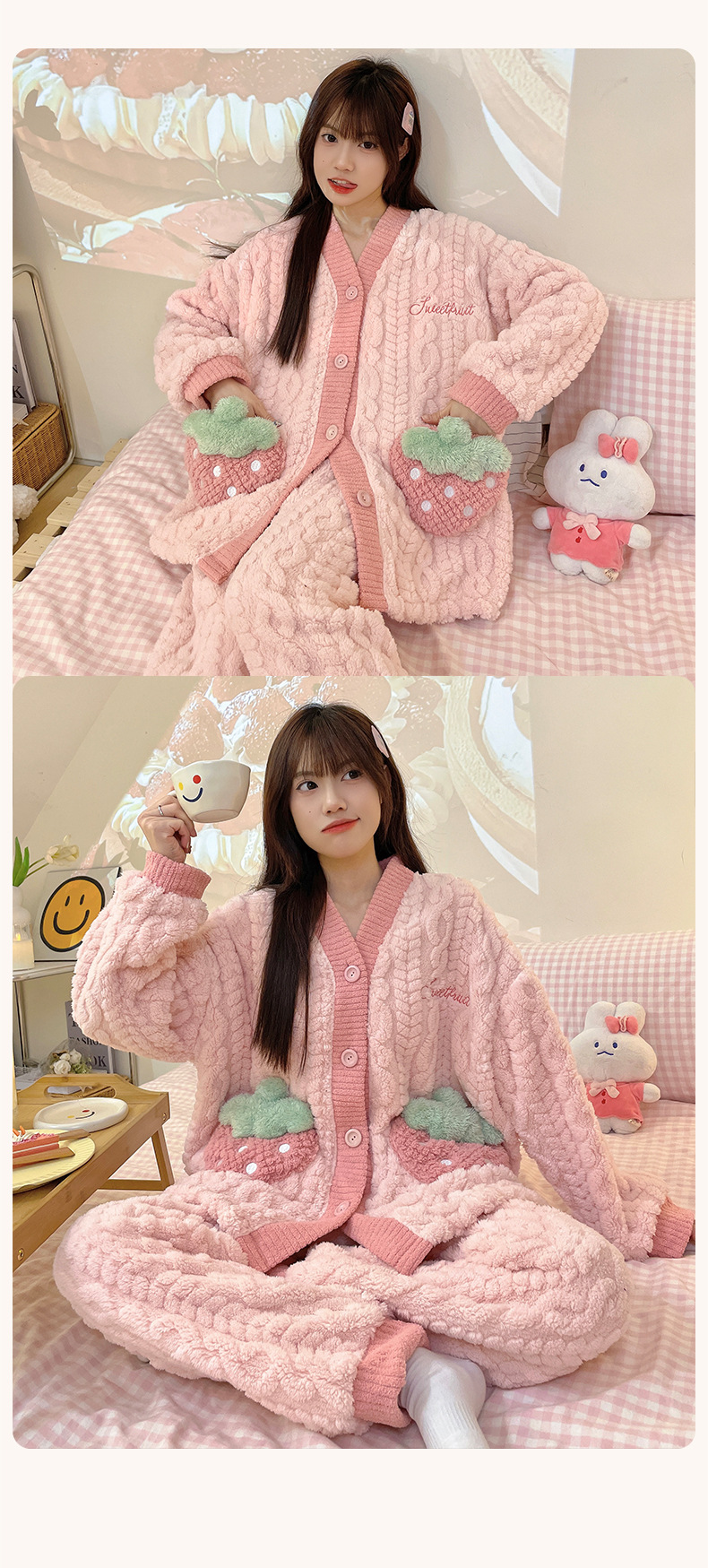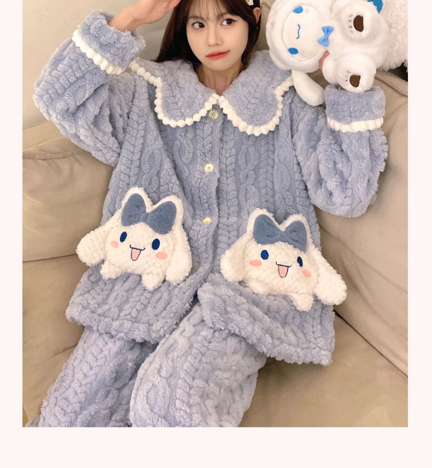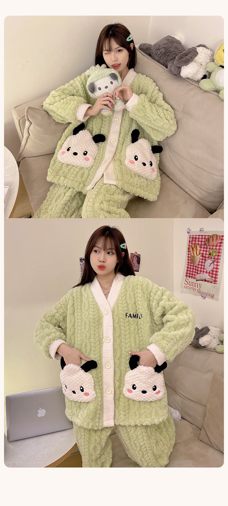 가을 겨울 여성용 산호 벨벳 잠옷, 귀여운 만화 캐릭터, 벨벳 소재의 두꺼운 공주풍 플란넬 홈웨어 세트스토어 가기