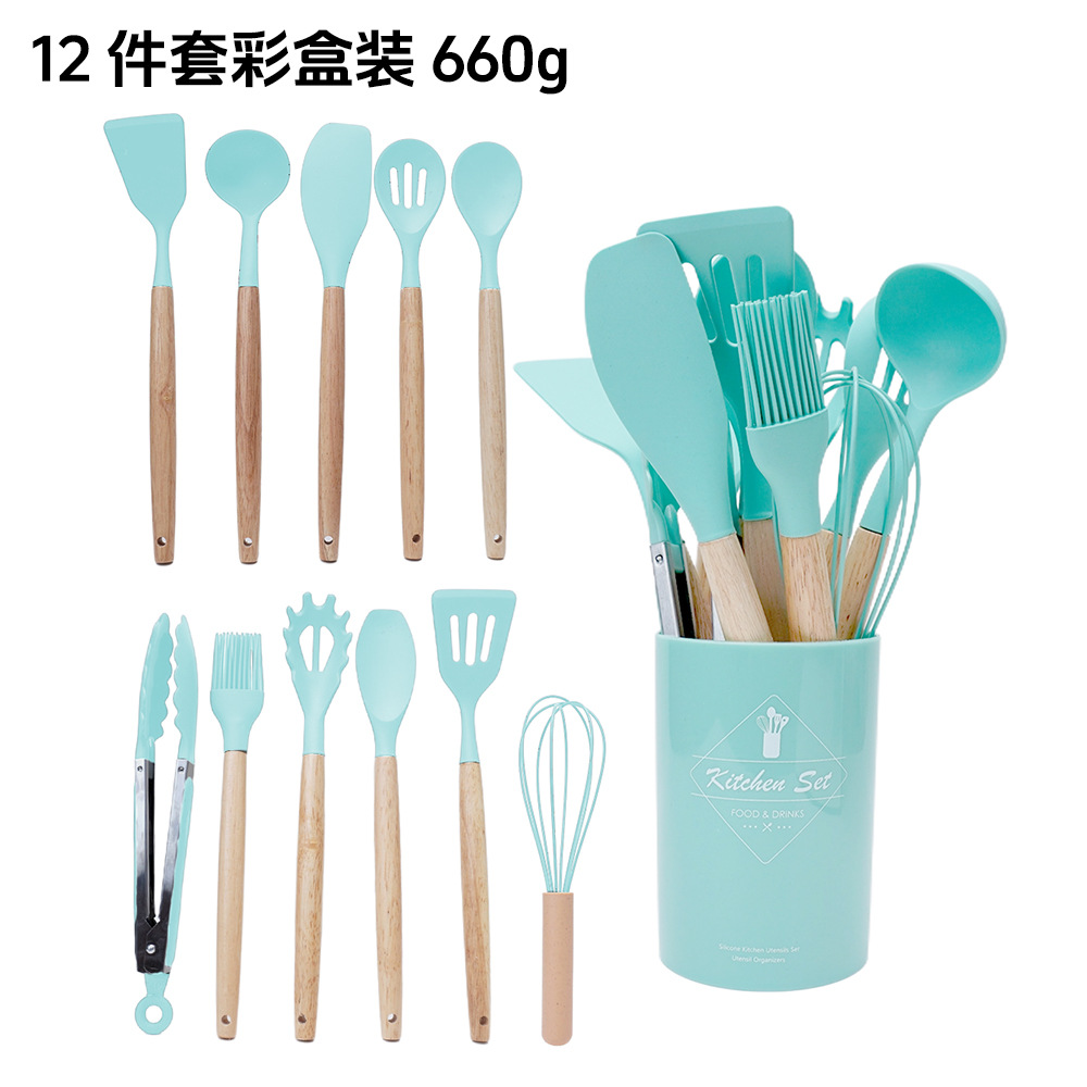 라이트 버전 750g 실리콘 주방 용품 세트 나무 손잡이 14 개 세트 주방 도구 요리 삽 스푼 세트 14 개 세트