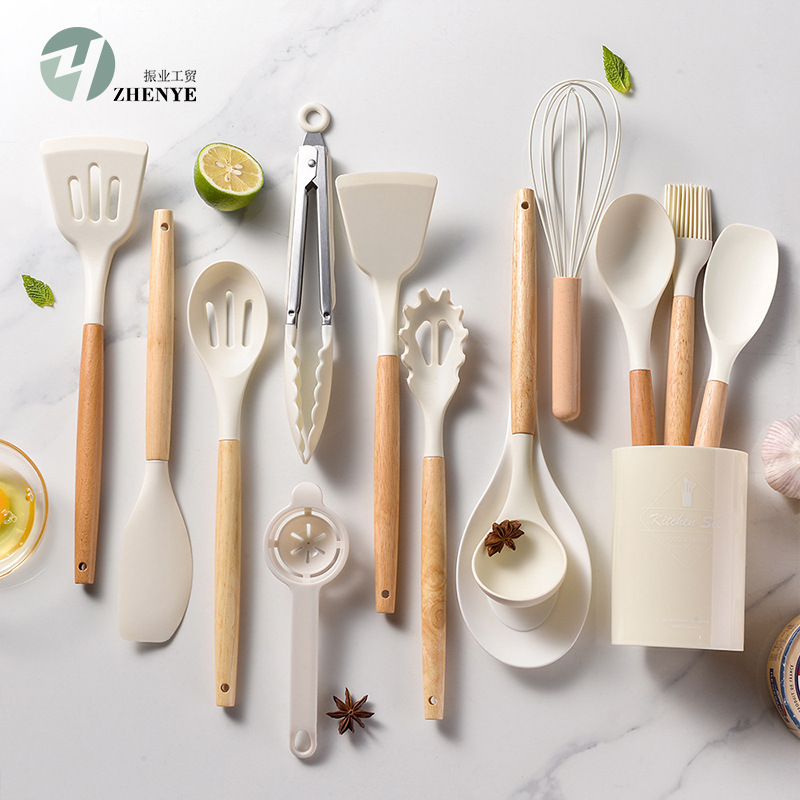 라이트 버전 750g 실리콘 주방 용품 세트 나무 손잡이 14 개 세트 주방 도구 요리 삽 스푼 세트 14 개 세트스토어 가기
