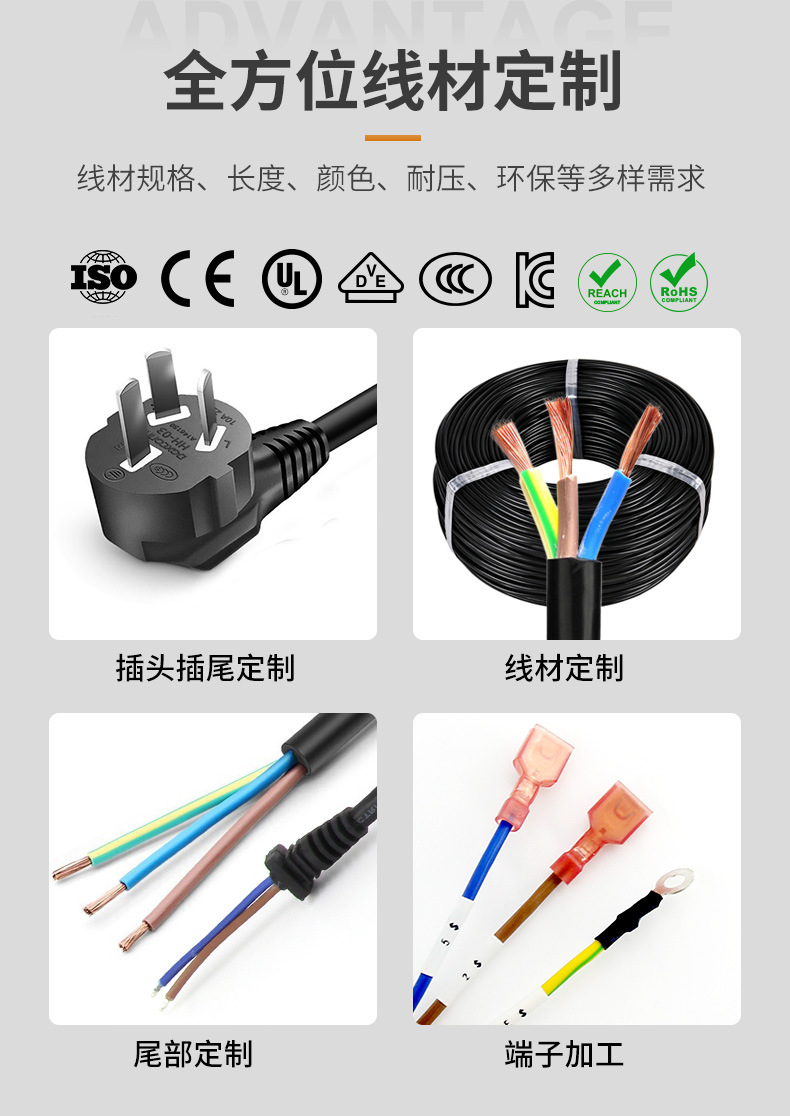定制CCC认证电饭锅90弯头电源线 电脑电器设备国标三插裸尾电源线