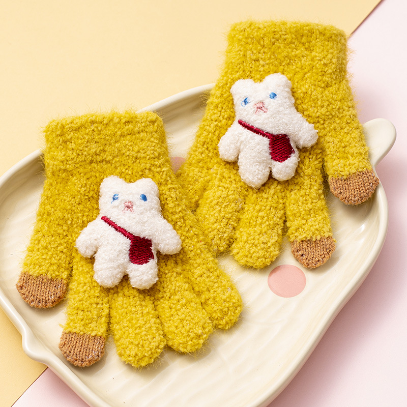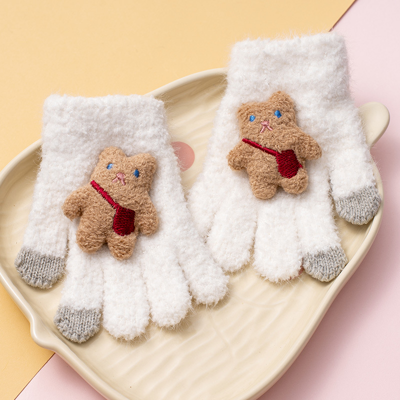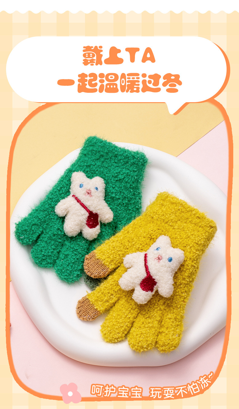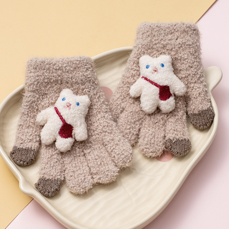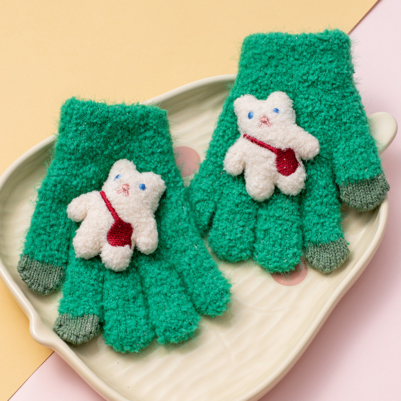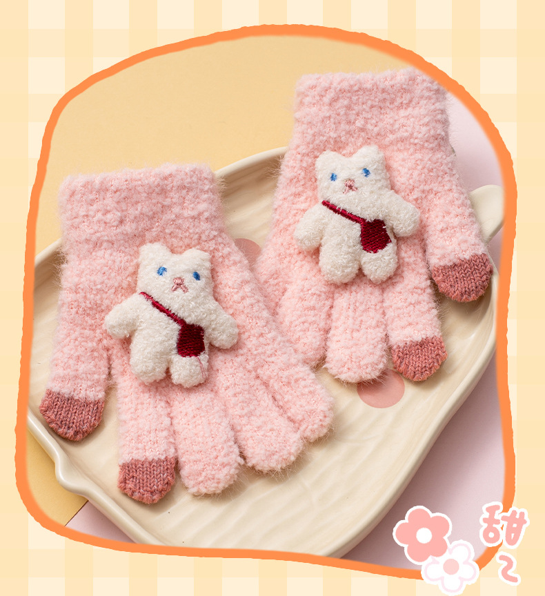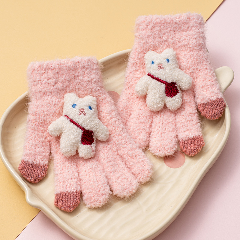 가을과 겨울 새로운 어린이 장갑 방한 따뜻한 소년 소녀 백 백 백 백 베어 아기 다섯 손가락 양모 니트 장갑