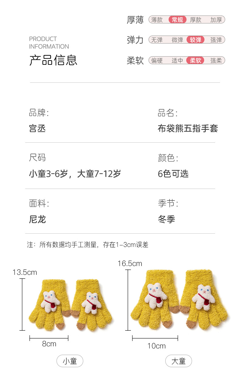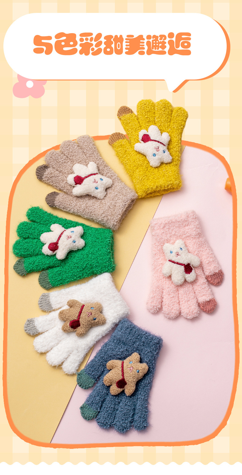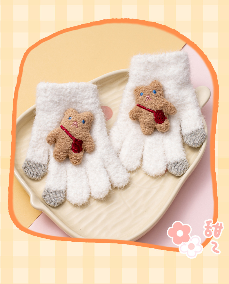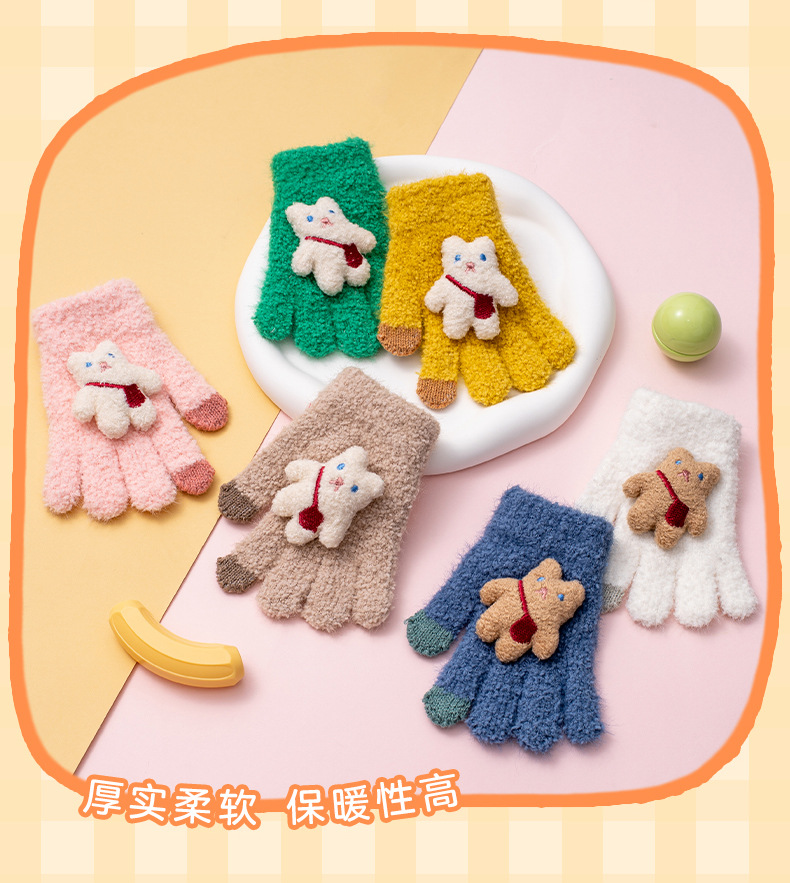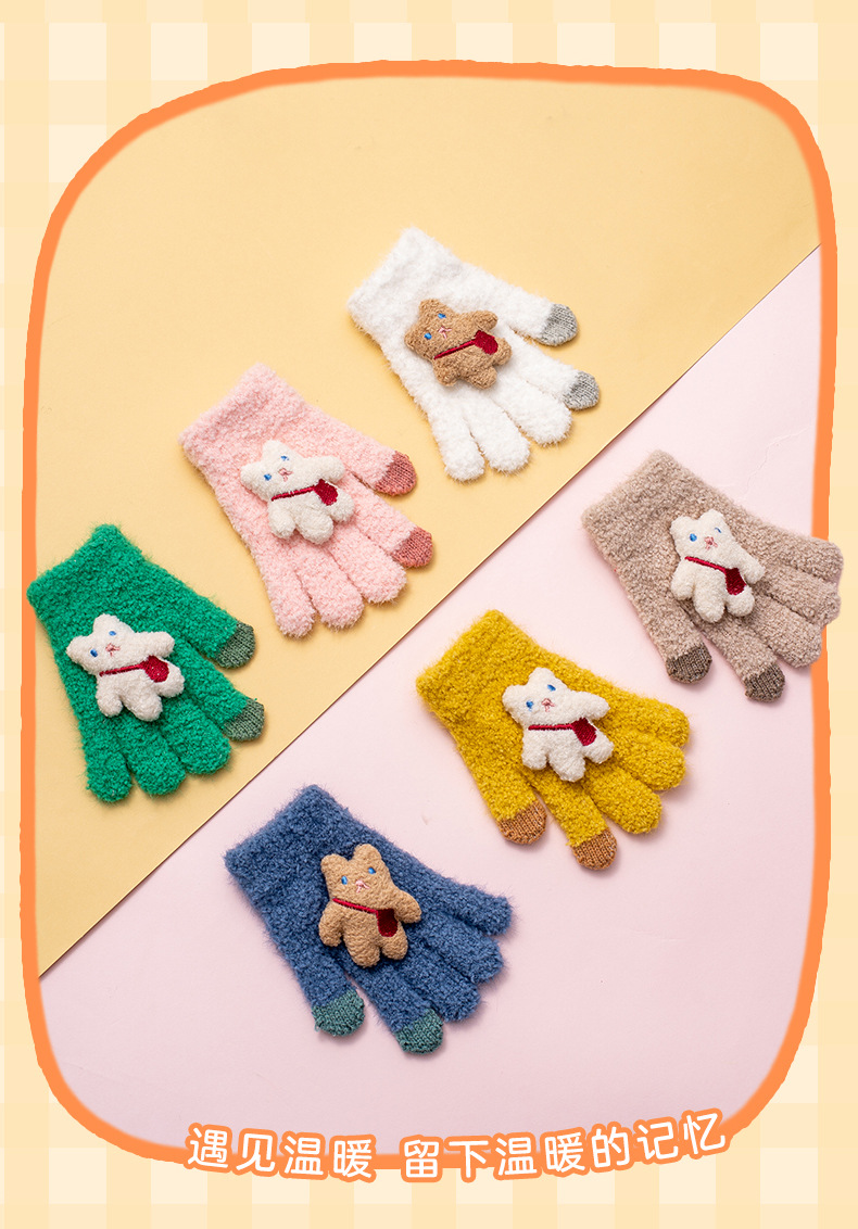가을과 겨울 새로운 어린이 장갑 방한 따뜻한 소년 소녀 백 백 백 백 베어 아기 다섯 손가락 양모 니트 장갑