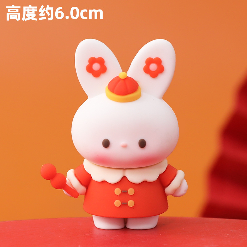 국가 조수 스타일 중국식 케이크 장식 장식품 토끼의 토끼 년 조디악 토끼 입체 부드러운 접착제 인형 설탕 코팅 조롱박 랜턴 토끼