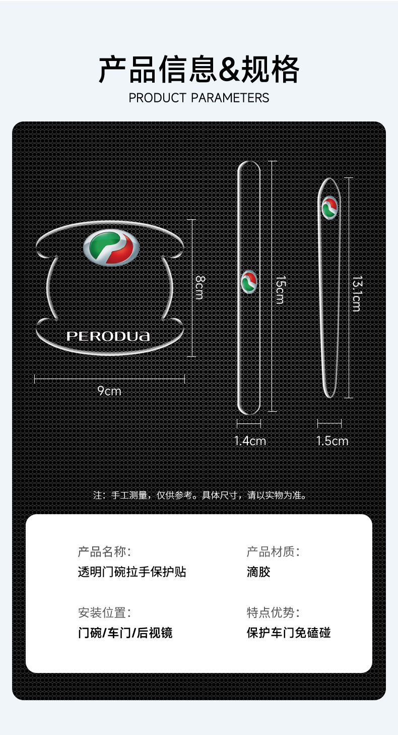 • 대형 표준 투명 핸들/도어 에지/백미러/도어 볼 [14 장 세트]