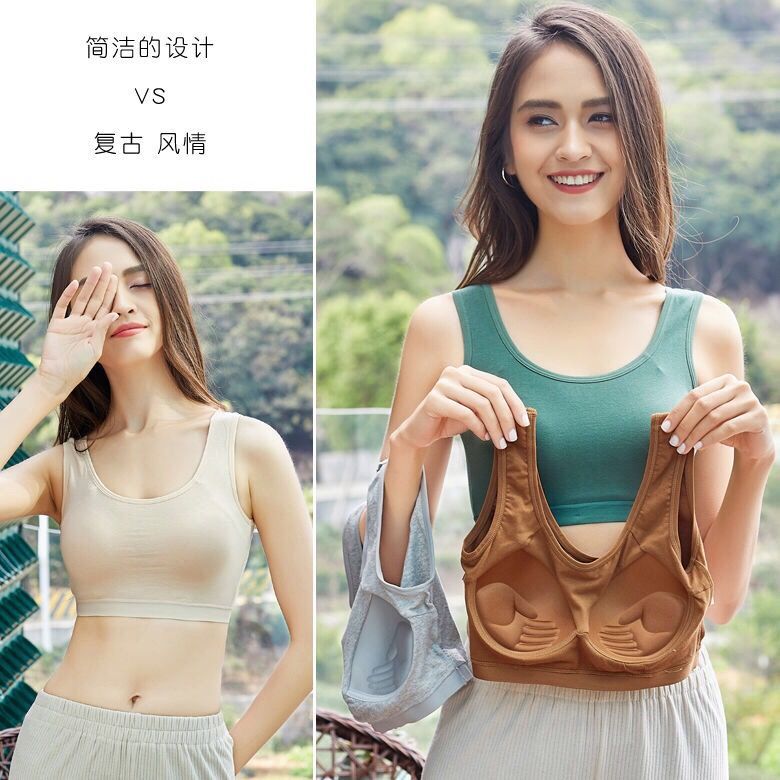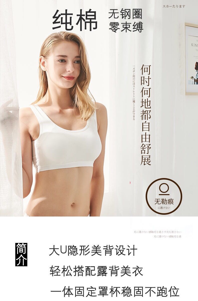순면 와이어 프리 아름다운 등 브라 일체형 처짐 방지 푸쉬업 가슴 감싸는 탱크탑 스타일 소녀 스포츠 ss스토어 가기