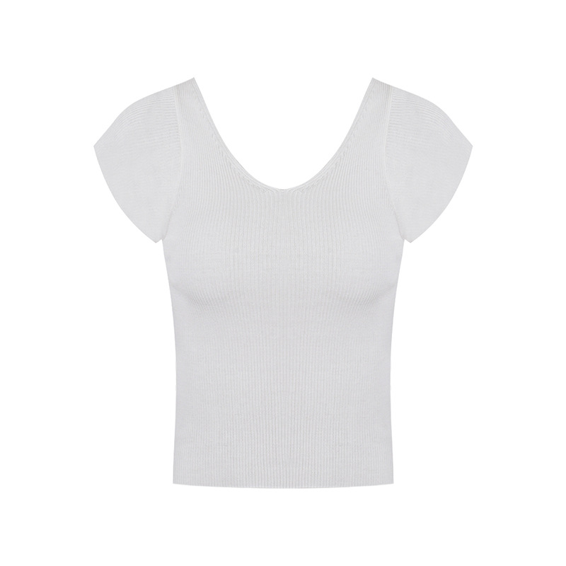 복숭아 여자 친구 텐셀 뽕나무 실크 작은 비행 소매 니트 ~ V 칼라 풀오버 짧은 소매 T 여성 여름스토어 가기