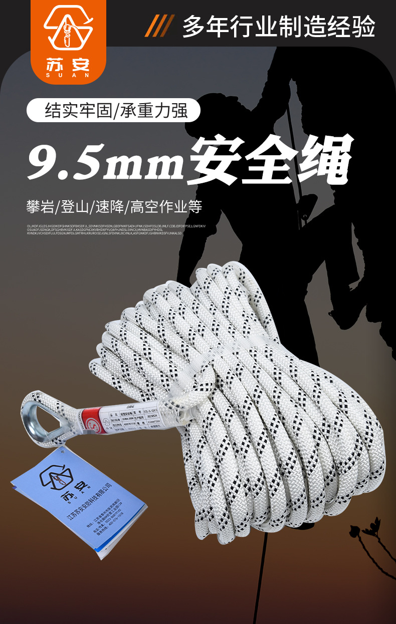 수안 화재 3C 9.5mm 가벼운 안전 로프 인명 구조 탈출 로프 야외 등산 로프