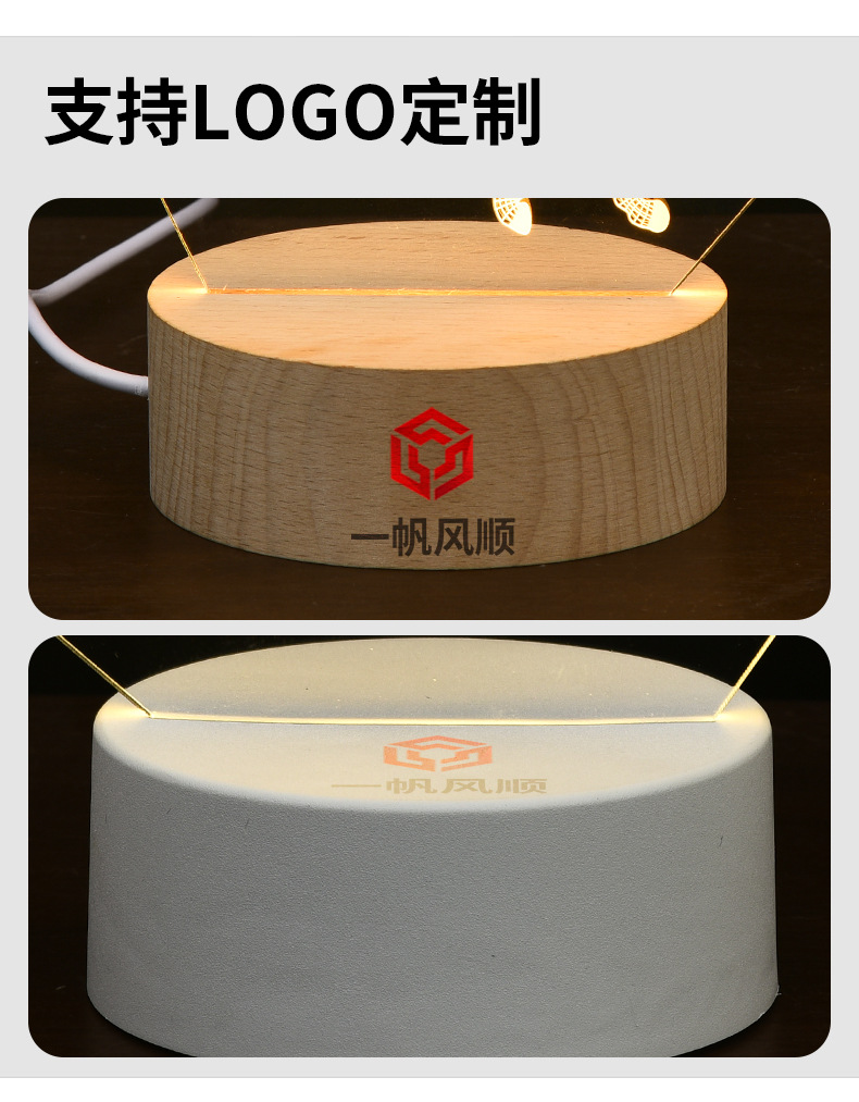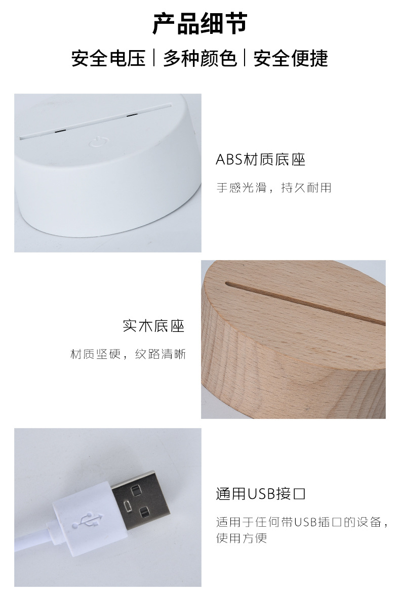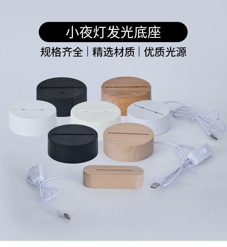 맞춤형 3D 야간 조명 기본 색상 변경 발광 베이스 램프 타입-c 인터페이스 아크릴 야간 조명 플라스틱베이스