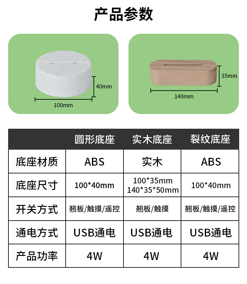 맞춤형 3D 야간 조명 기본 색상 변경 발광 베이스 램프 타입-c 인터페이스 아크릴 야간 조명 플라스틱베이스스토어 가기