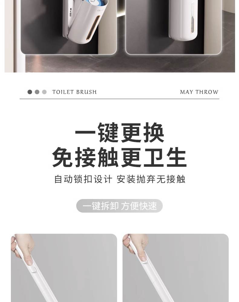 일회용 변기 브러시 벽걸이 형 가정용 화장실 없음 데드 앵글 청소 변기 브러시 2023 새로운 유물스토어 가기