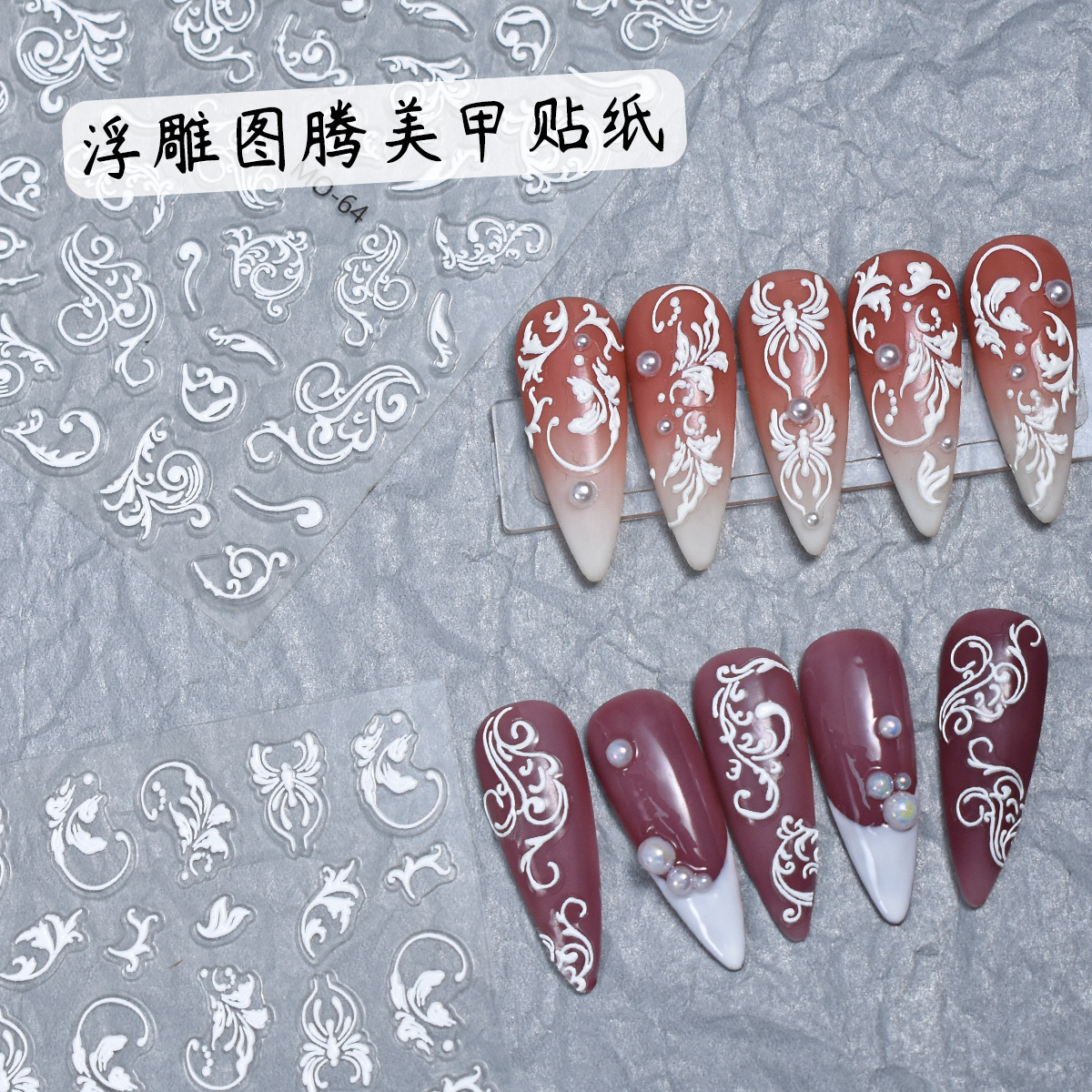 양각 레트로 보헤미안 토템 네일 아트 데칼 화이트 덩굴 남자 스테레오 네일 아트 스티커 화이트 네일 아트스토어 가기