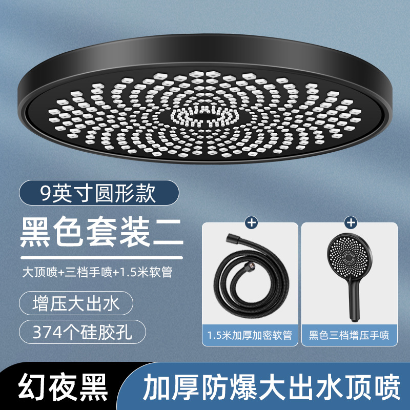 • [매직 나이트 블랙 세트 2] 9 인치 탑 스프레이 + 핸드 샤워 + 1.5 m 호스
