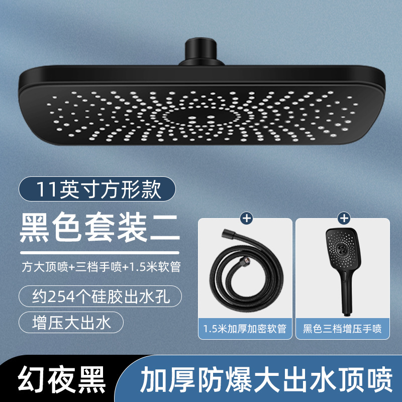 • [블랙 세트 2] 11 인치 상단 스프레이 + 핸드 샤워 + 1.5 m 호스