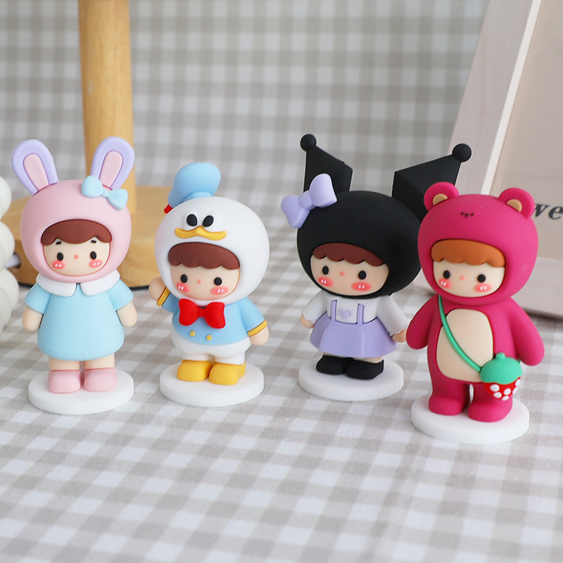 만화 케이크 장식 장식품 토끼 곰 소년 소녀 부드러운 접착제 인형 귀여운 오리 고양이 어린이 생일