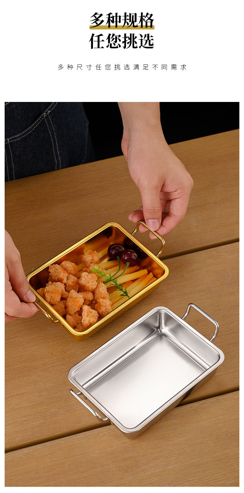 크로스보더 304 스테인리스 스낵 접시 창의적인 양쪽 손잡이 달린 프라이드 치킨 및 감자튀김 접시 상업용 훠궈집 준비용 접시스토어 가기