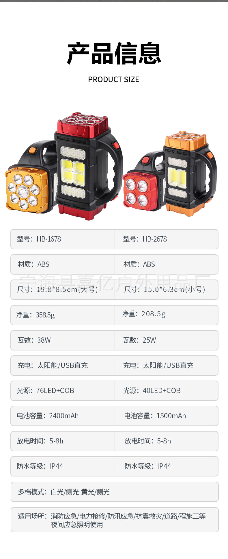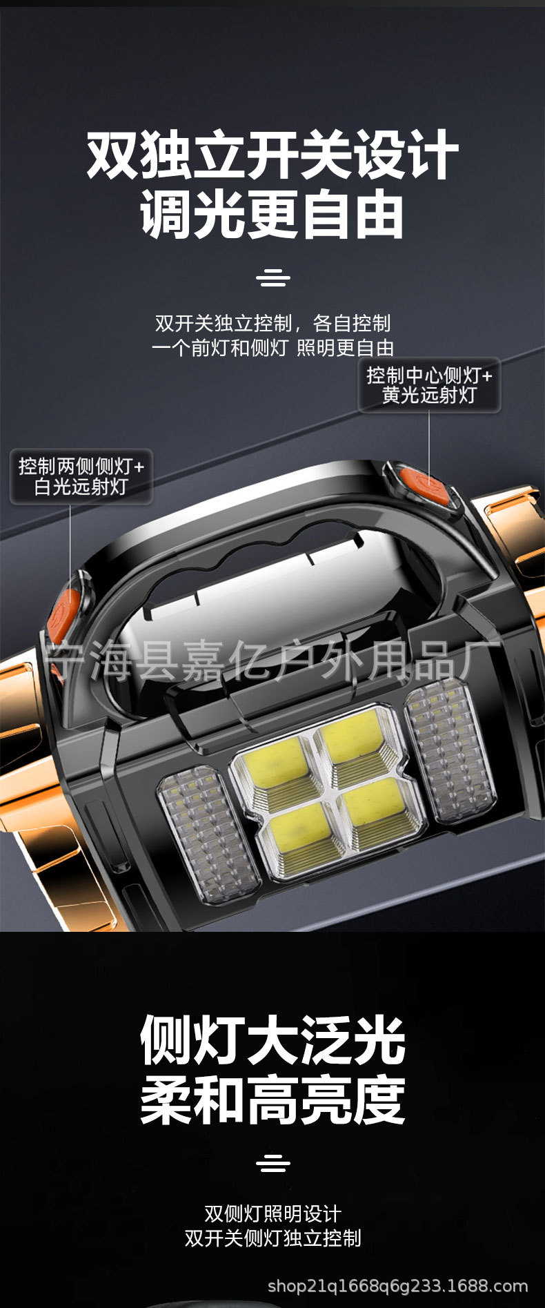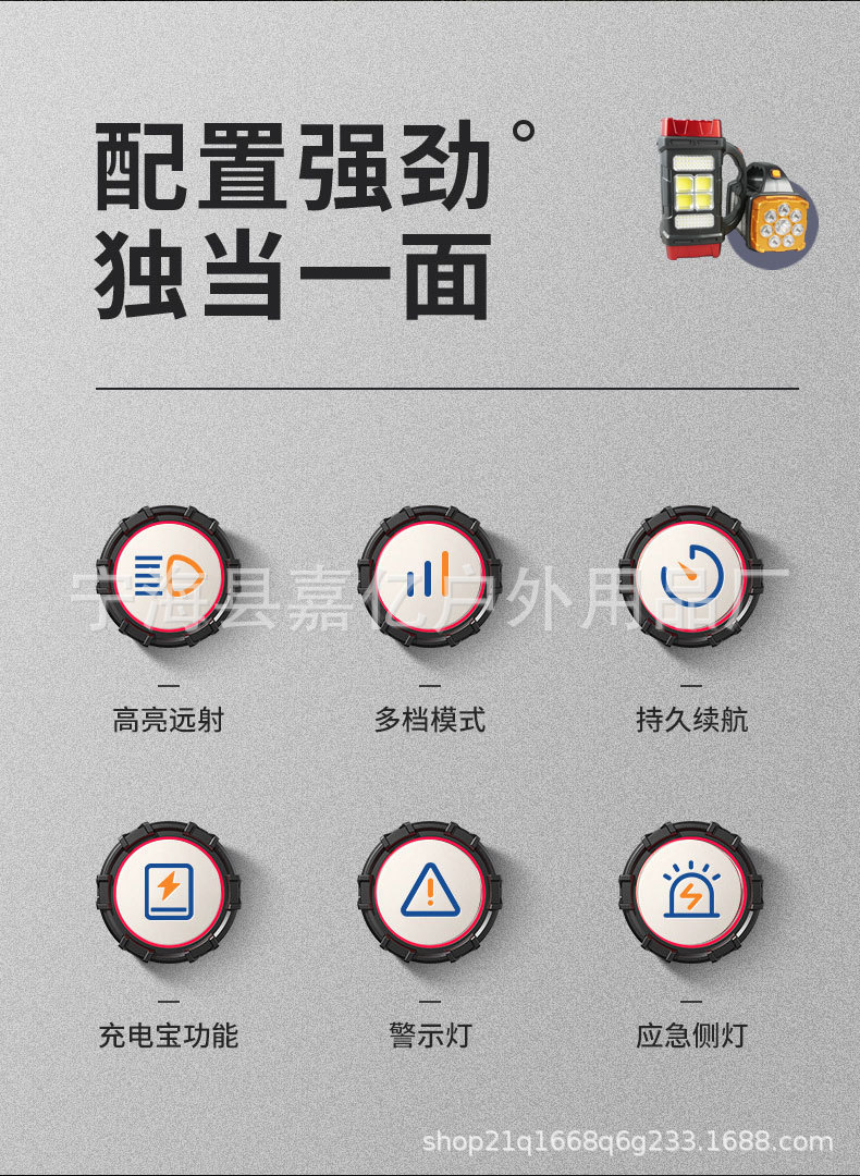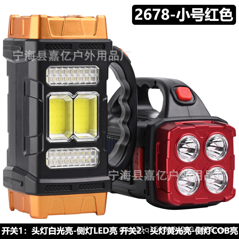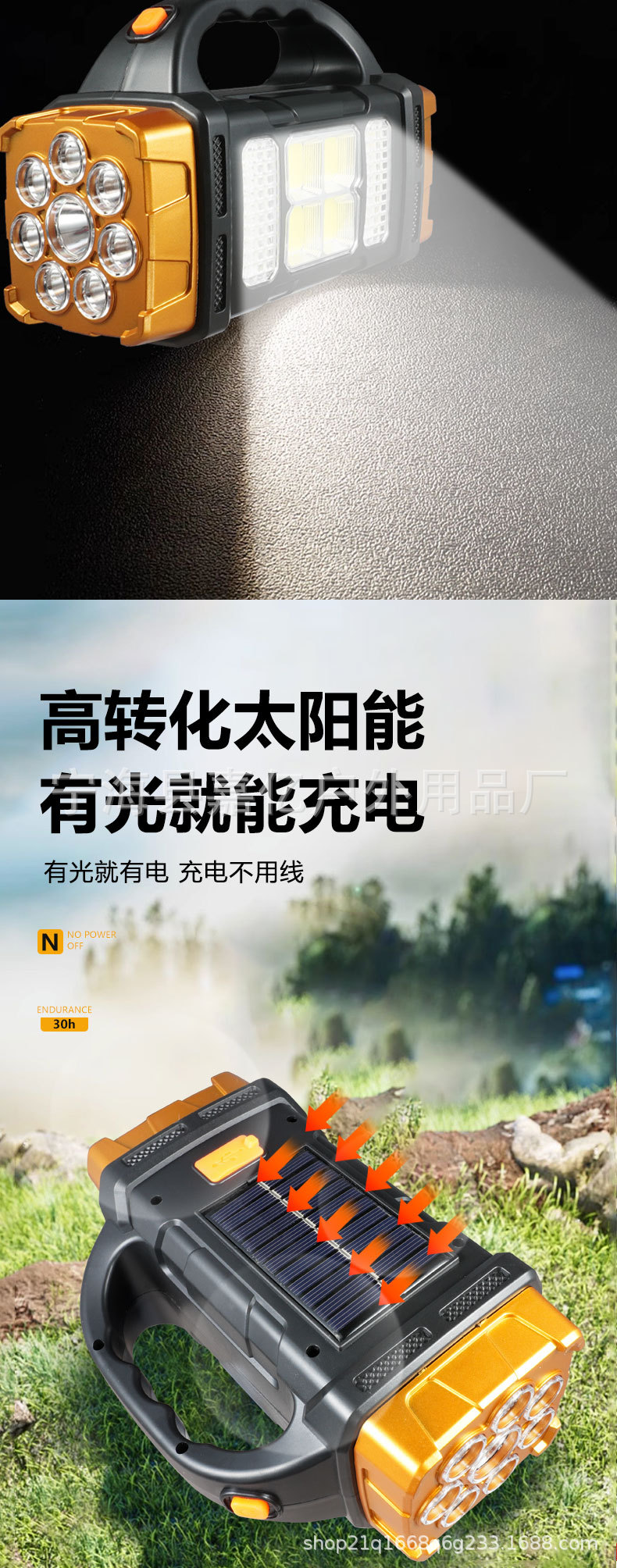 LED 다기능 휴대용 서치 라이트 USB 충전 측면 조명 캠핑 강한 빛 태양 야외 비상 손전등스토어 가기