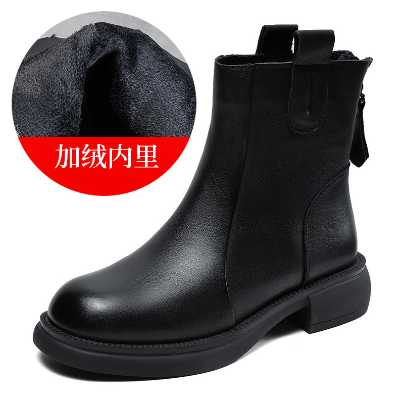 정품 가죽 짧은 부츠 여자의 2023 가을과 겨울 새로운 다크 브라운 탑 레이어 소가죽 플랫 부드러운 가죽 신발 라운드 발가락 얇은 짧은 부츠 여성 부츠스토어 가기