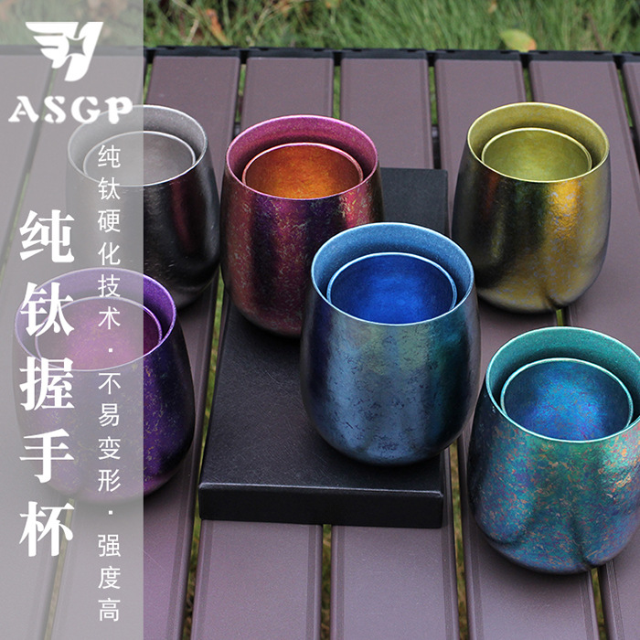 팩토리 다이렉트 퓨어 티타늄 2 층 컵 컬링 밀크 티 커피 맥주 컵 야외 동반 컵 농축 컵 도매