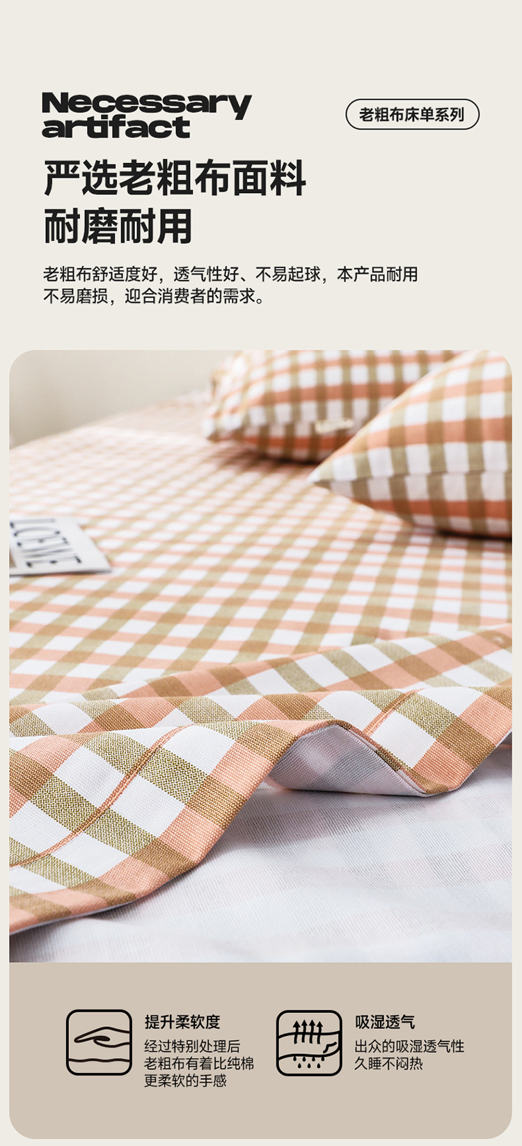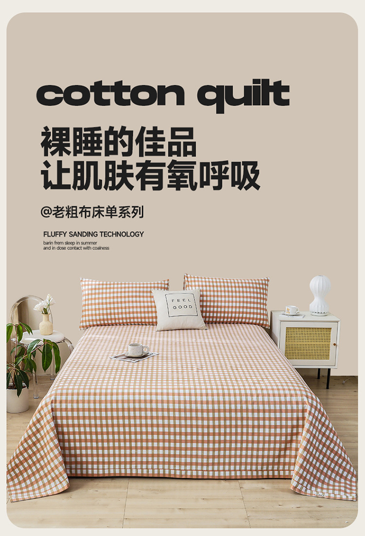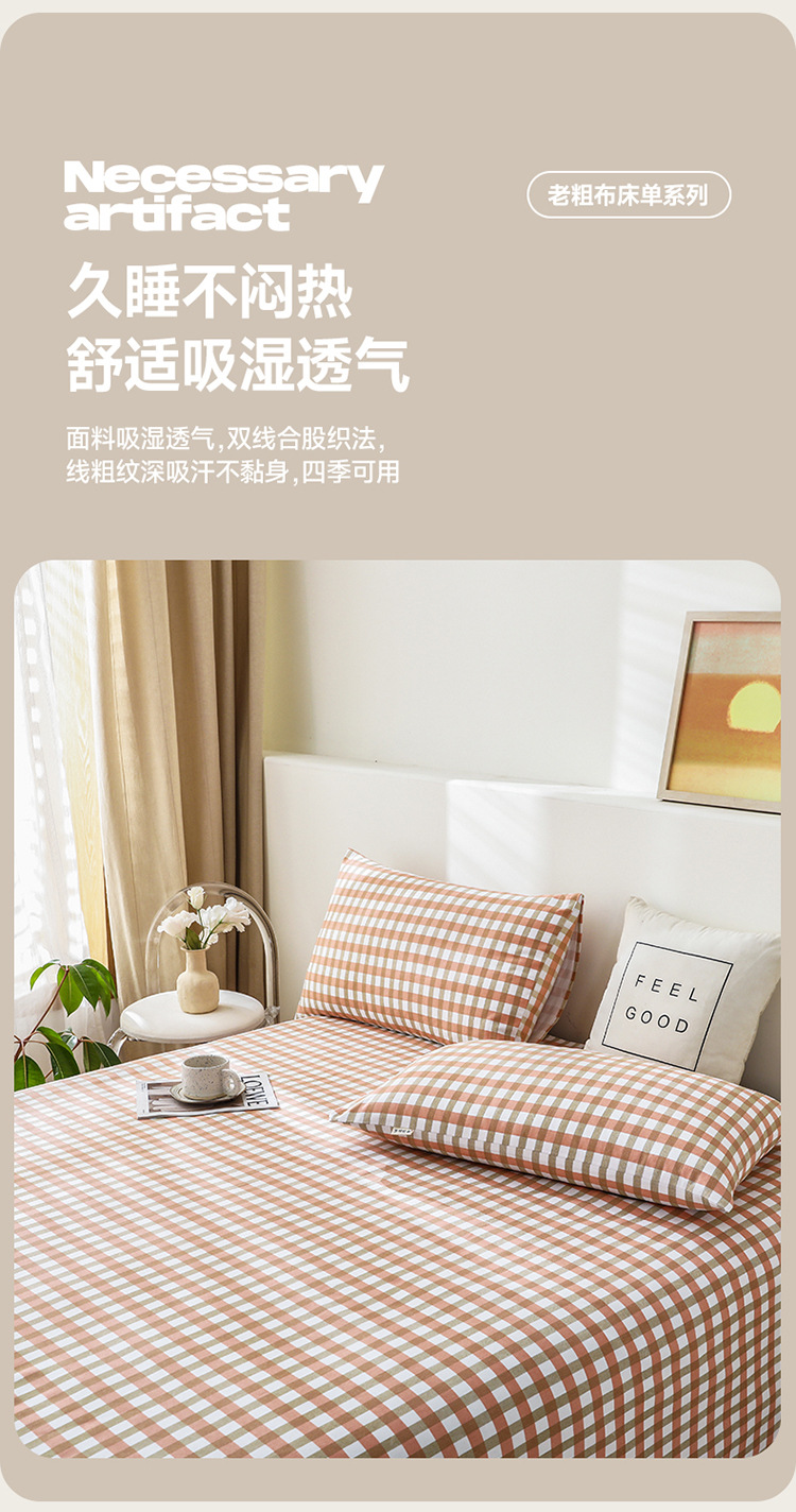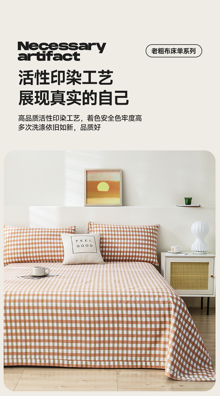 일본식 인쇄되지 않은 순면 오래된 거친 천 침대 시트 학생 기숙사용 두꺼운 내마모성 튼튼한 면 침대 모자
