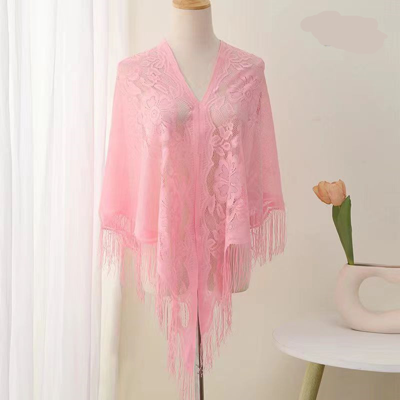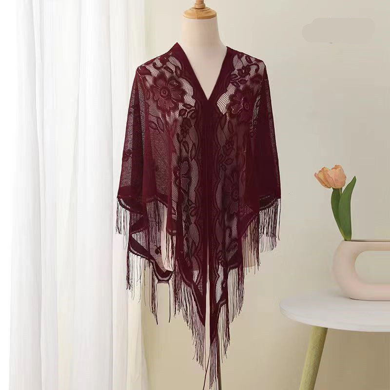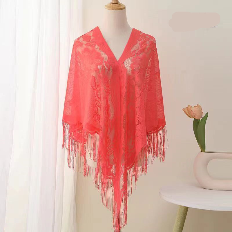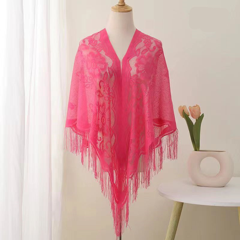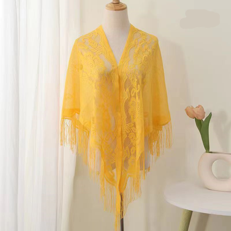크로스 보더 새로운 봄과 가을 실크 스카프 얇은 레이스 삼각 스카프 여성의 바깥 치파오 중국 의류 목도리 술 터번 도매