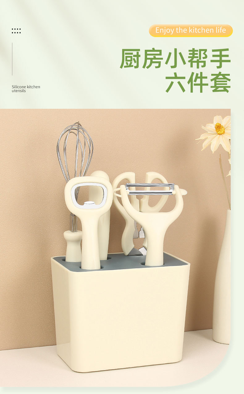 주방 칼 새로운 6 피스 세트 과일 칼 주방 가위 필링 나이프 병따개 보관함 세트 재고