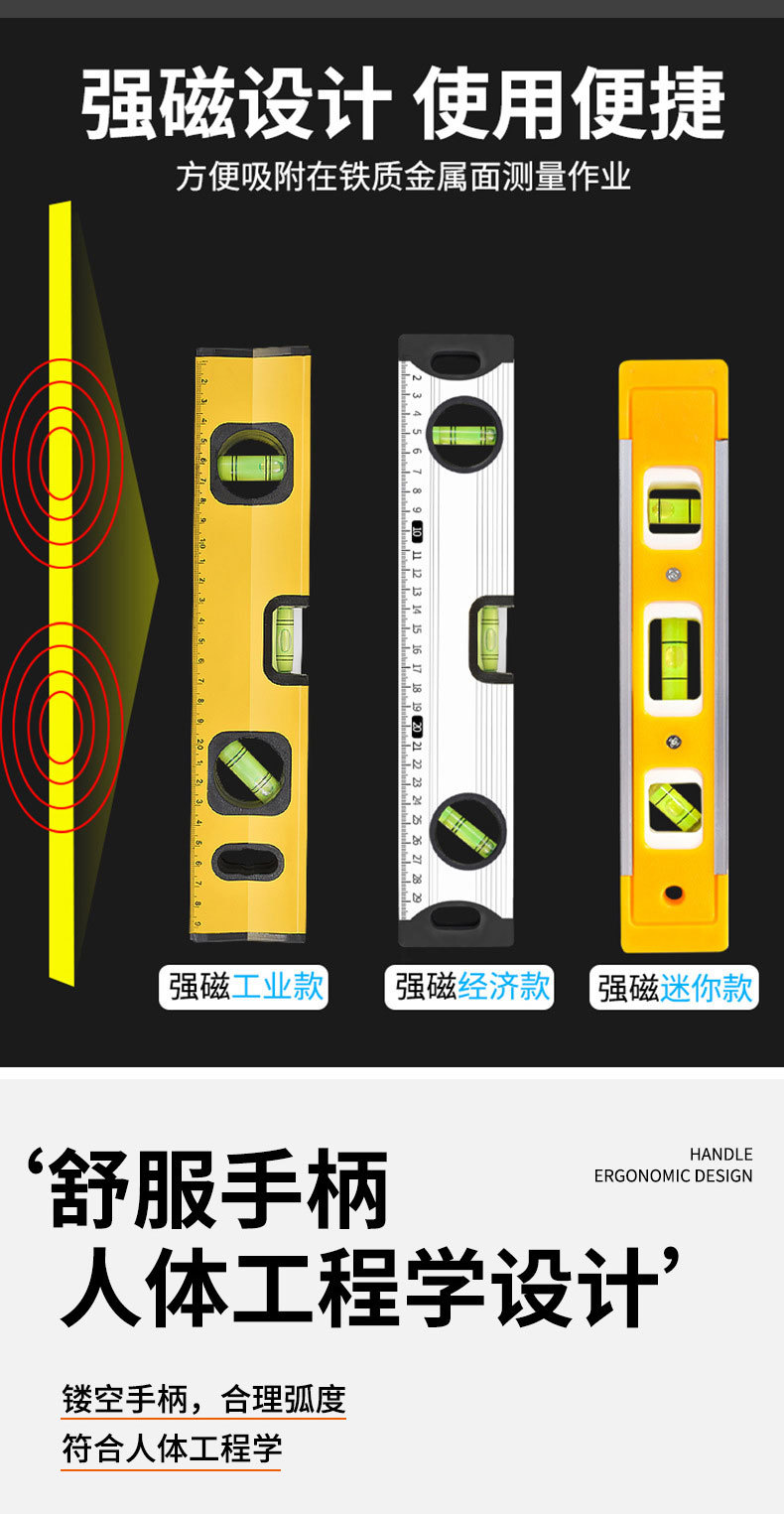레벨 눈금자 고정밀 가정용 플랫 워터 눈금자 팬 소형 알루미늄 합금 고체 낙하 방지 균형 도구 강한 자기