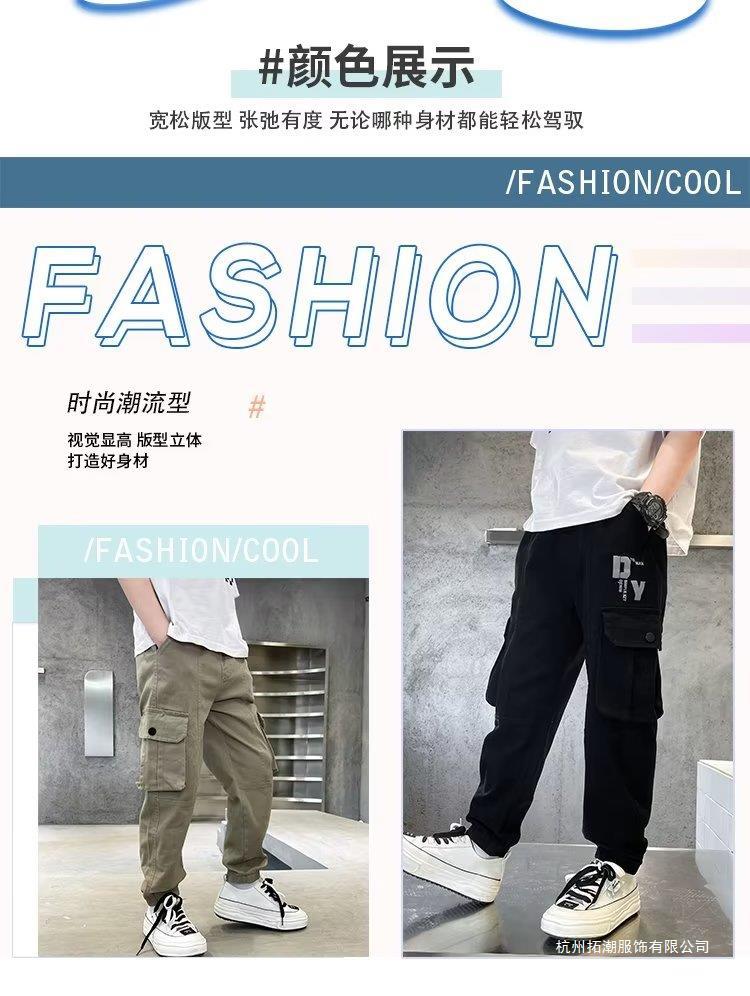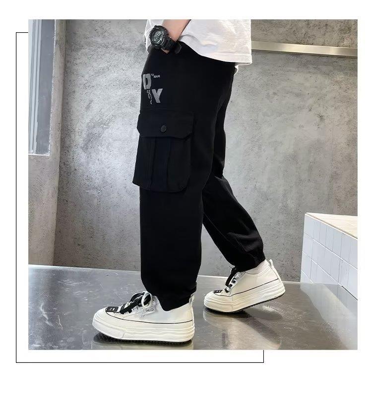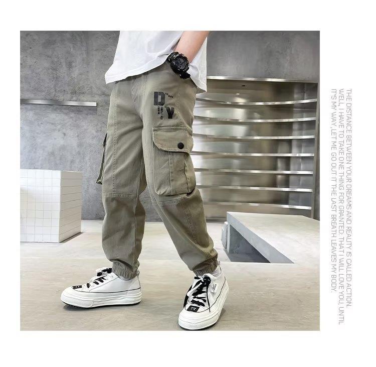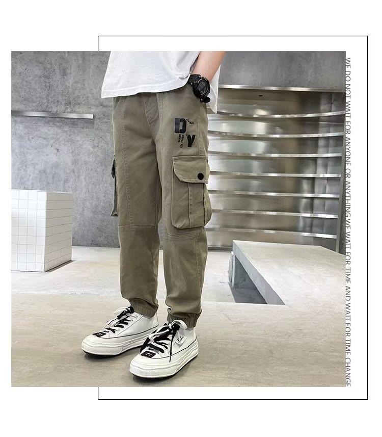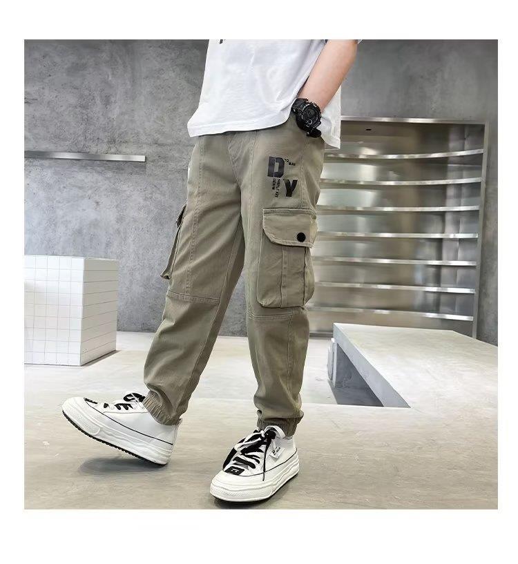 아동복 소년 봄 바지 2025 새로운 어린이 봄, 가을 스타일 중대형 어린이 봄 바지 소년 작업복 유행