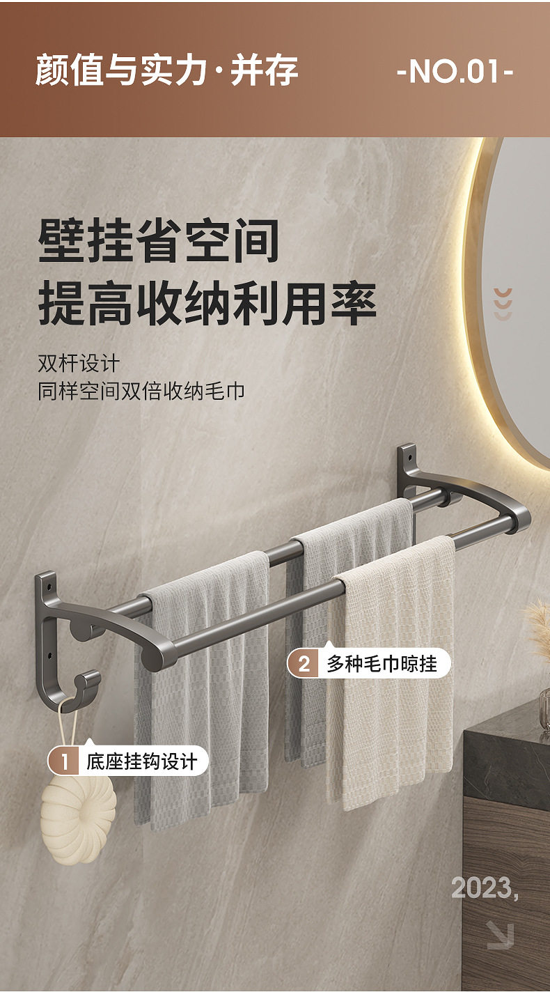 펀치 없는 수건 걸이 욕실 수건 걸이 욕실 걸이 화장실 수건 바 걸이 막대스토어 가기