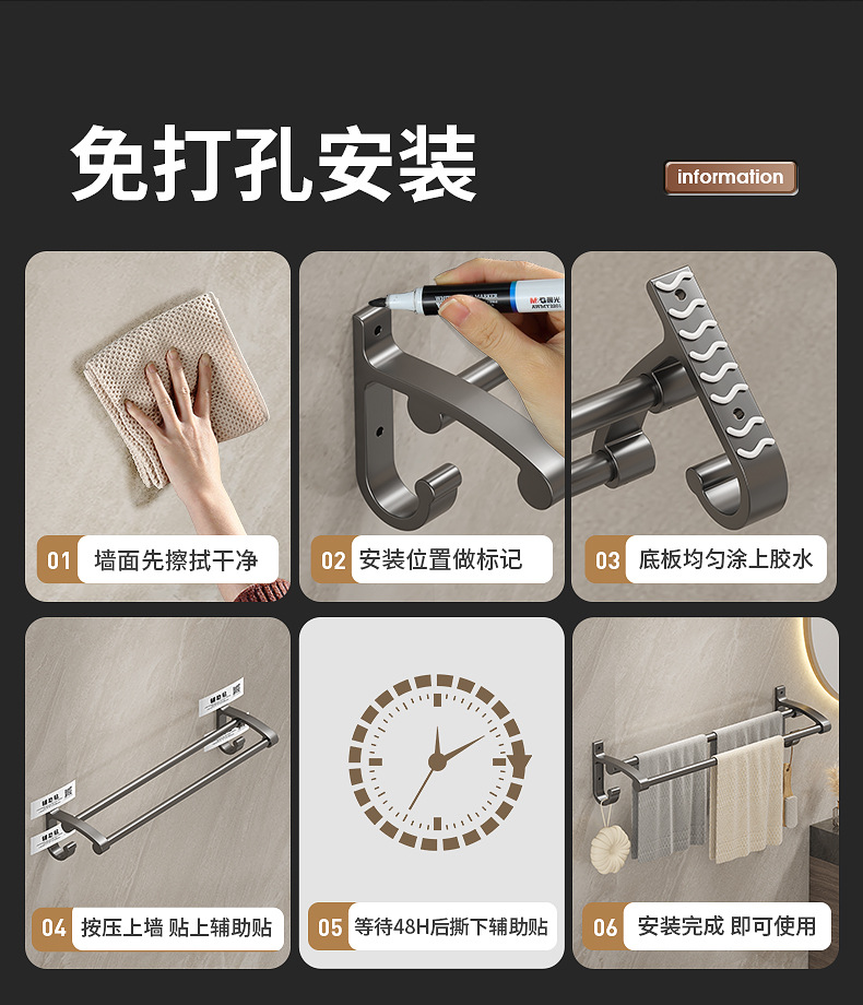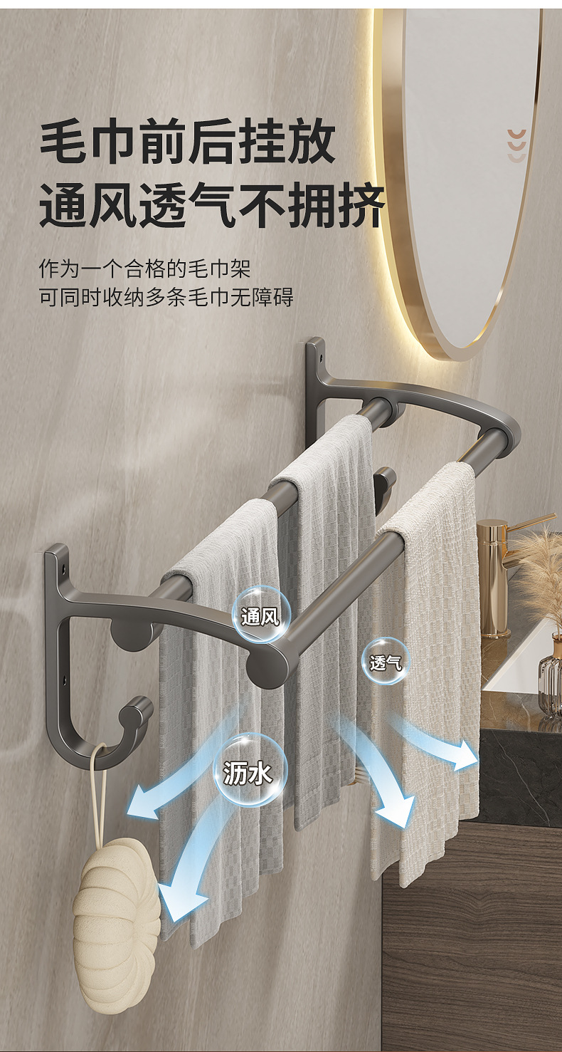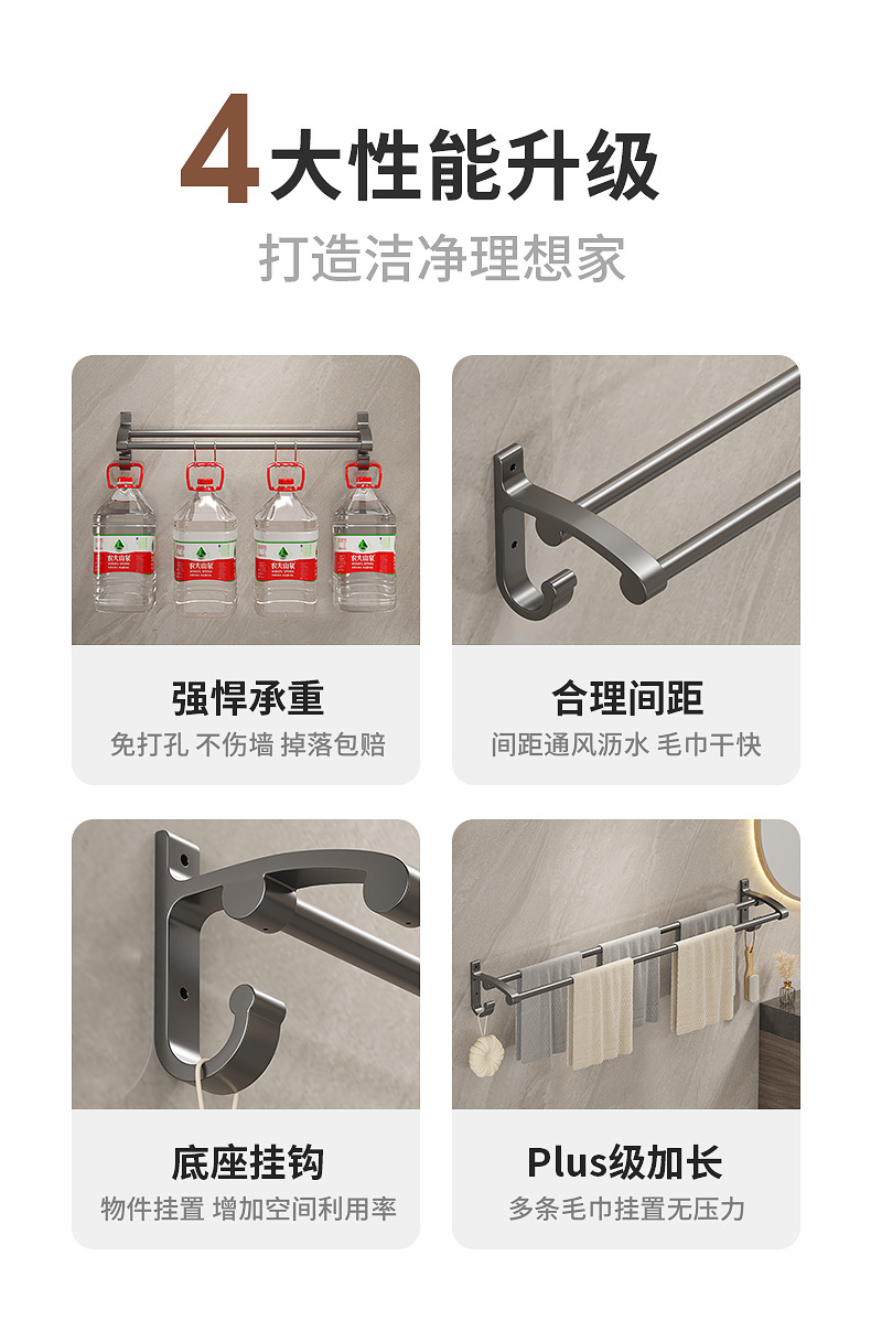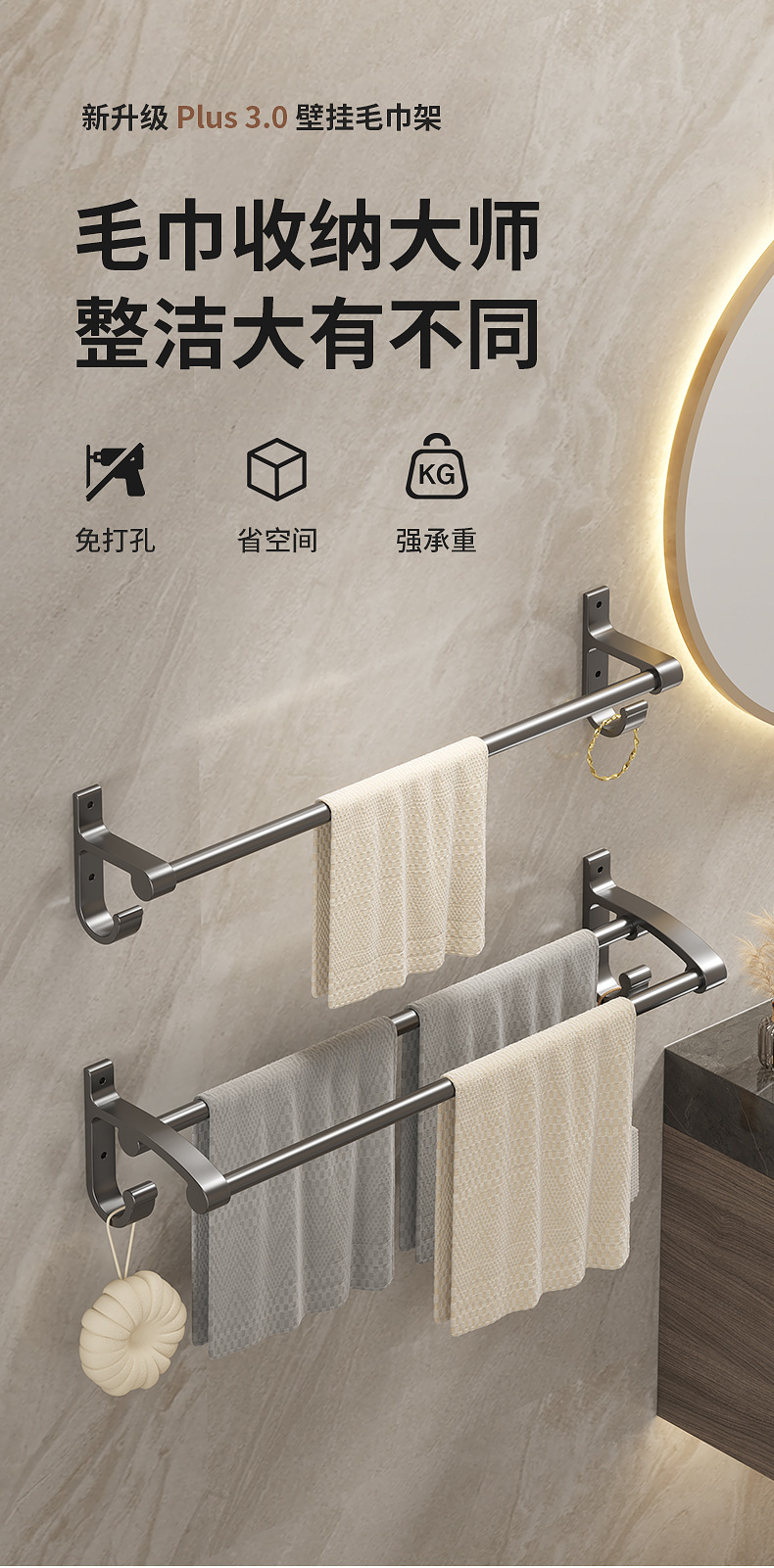 펀치 없는 수건 걸이 욕실 수건 걸이 욕실 걸이 화장실 수건 바 걸이 막대