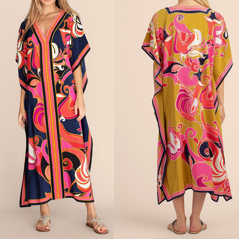 아마존 크로스-국경 대외 무역 뉴 레이온 비치 원피스 휴일 캐주얼 태양 보호 비키니 느슨한 블라우스