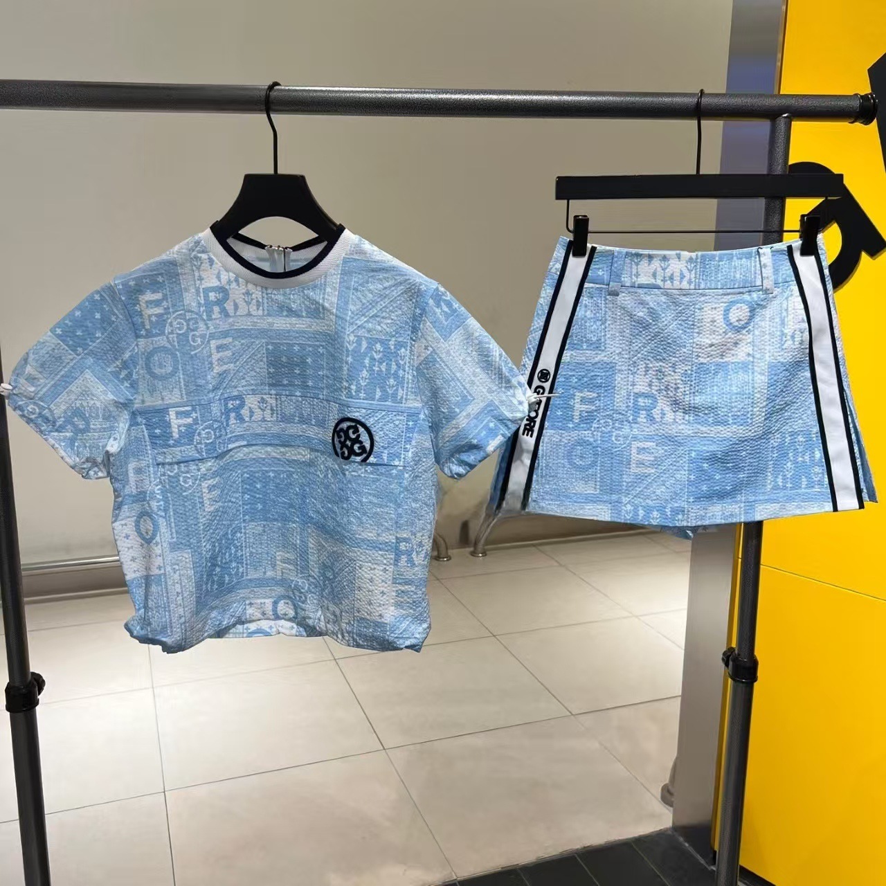 한국 골프 여성 정장, 패셔너블하고 활용도가 높은 라운드 넥 반팔 티셔츠, 스포티하고 편안하며 슬림한 하이웨이스트 스커트스토어 가기
