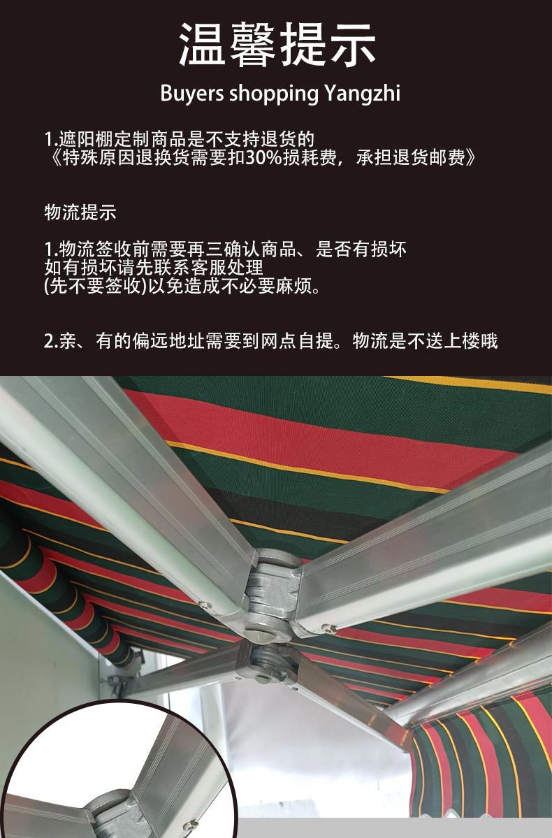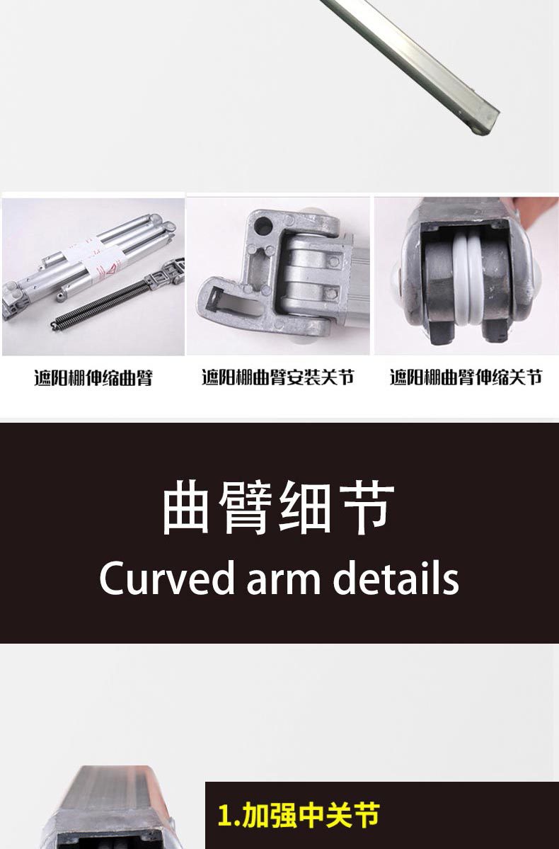 상점 출입구 창문 수동 전동식 접이식 차양막 부품 제조업체 레인 셰이드 알루미늄 합금 곡선 팔 접이식