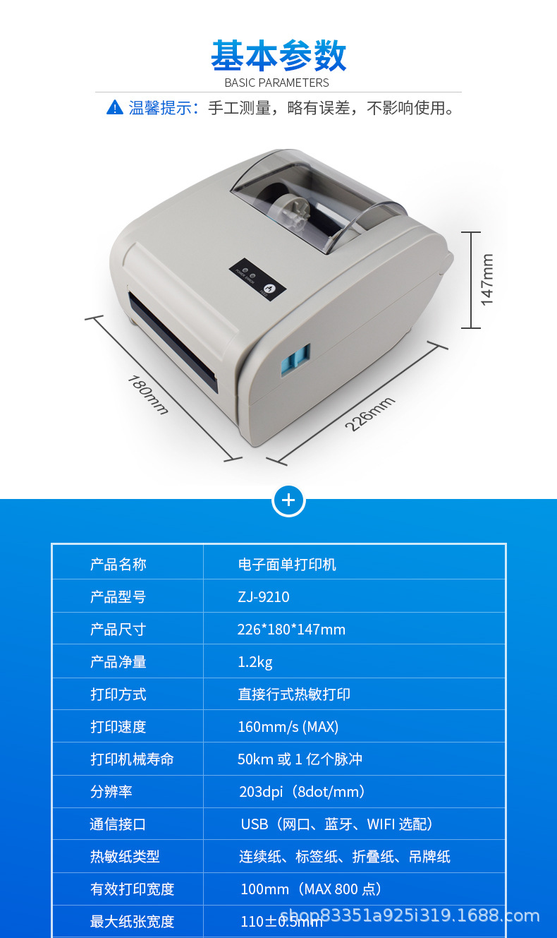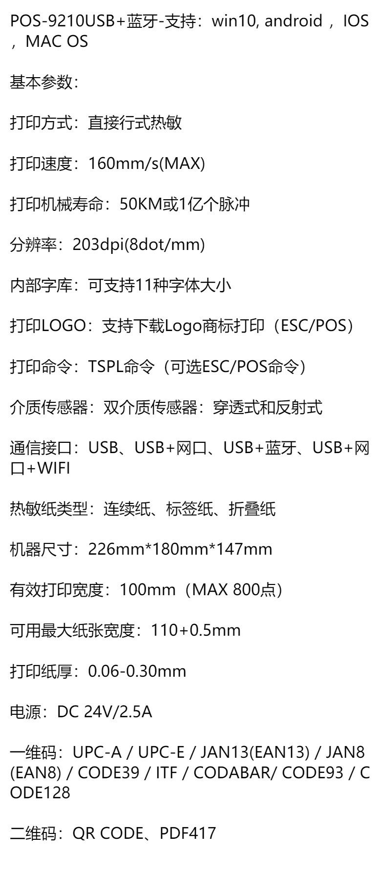 POS-9210 전자 얼굴 싱글 블루투스 휴대폰 열 바코드 접착 의류 태그 라벨 프린터