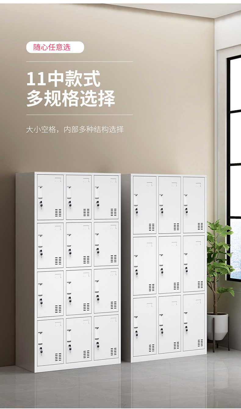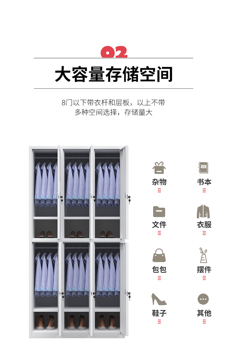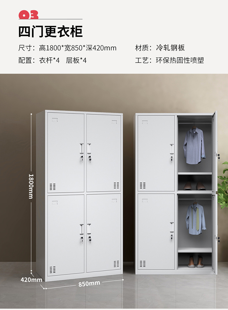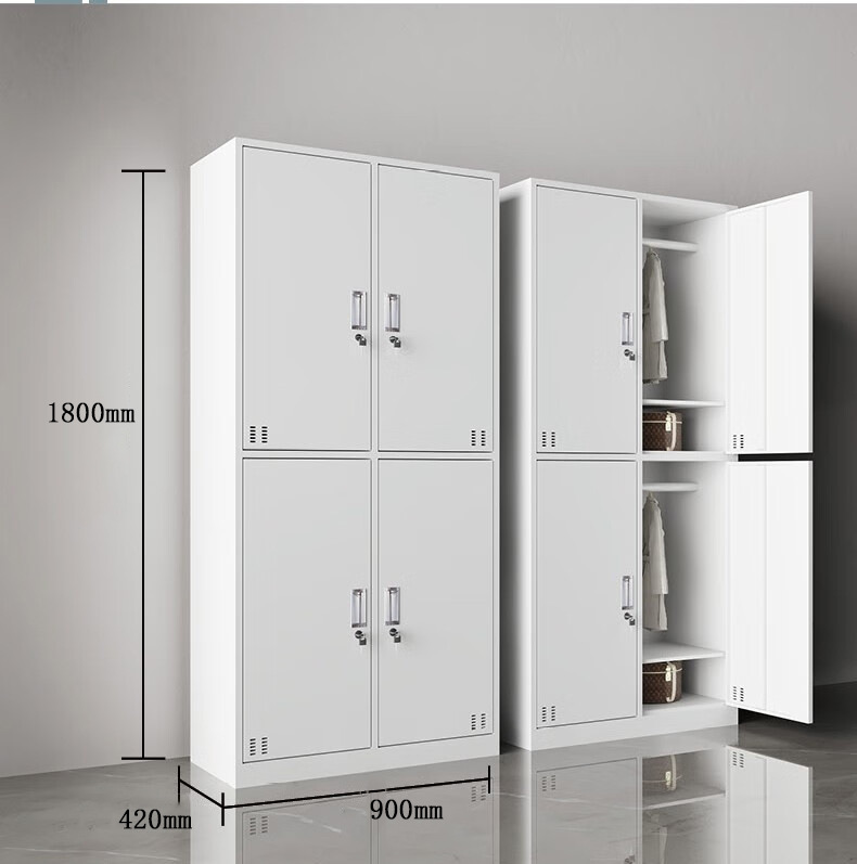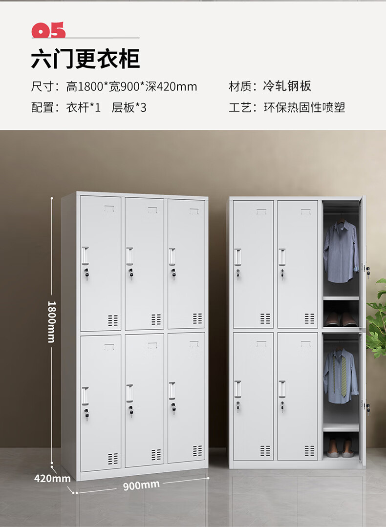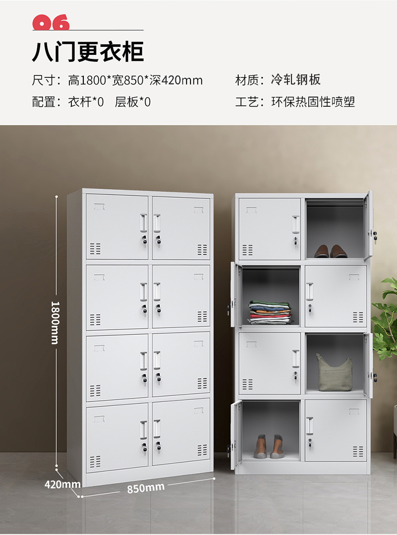 现代简约家用铁皮衣柜衣帽收纳多门带锁钢制储物柜工厂员工更衣柜