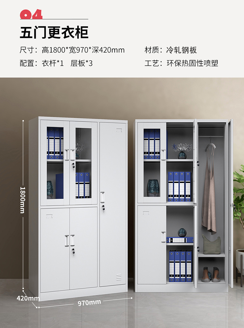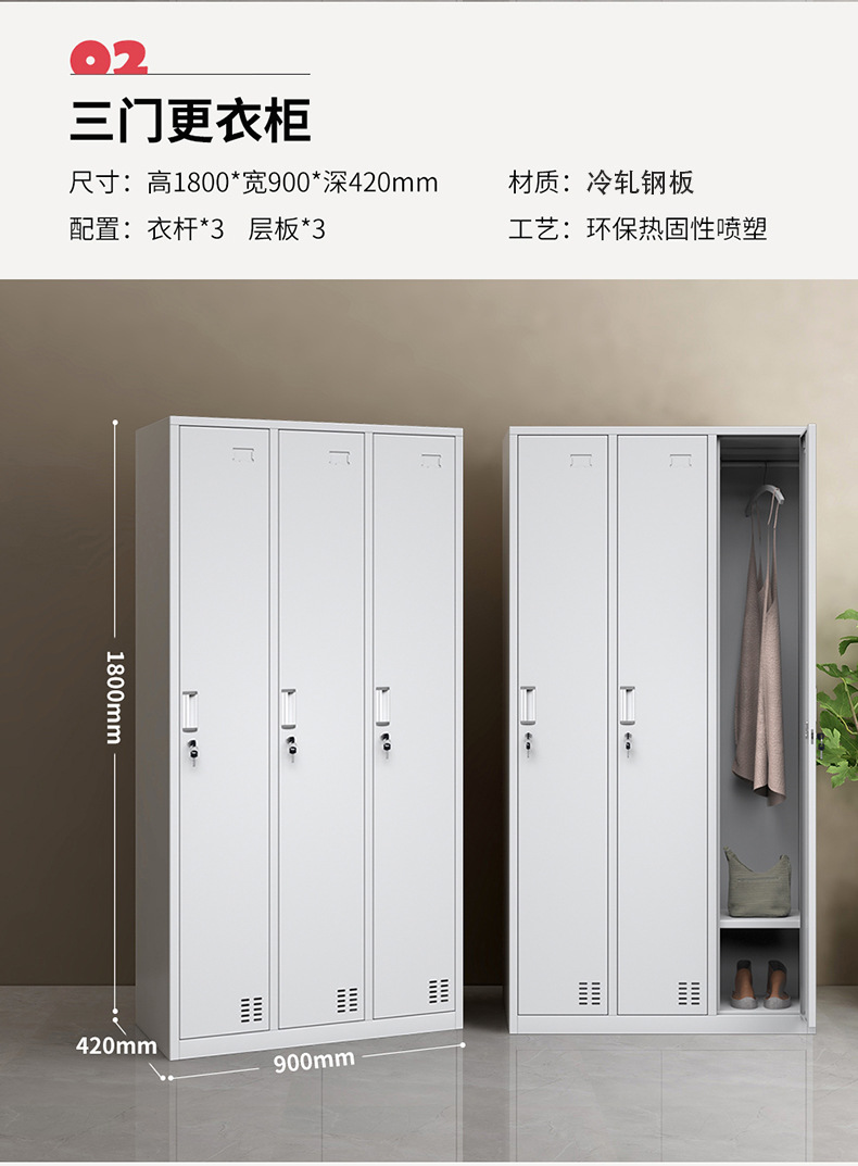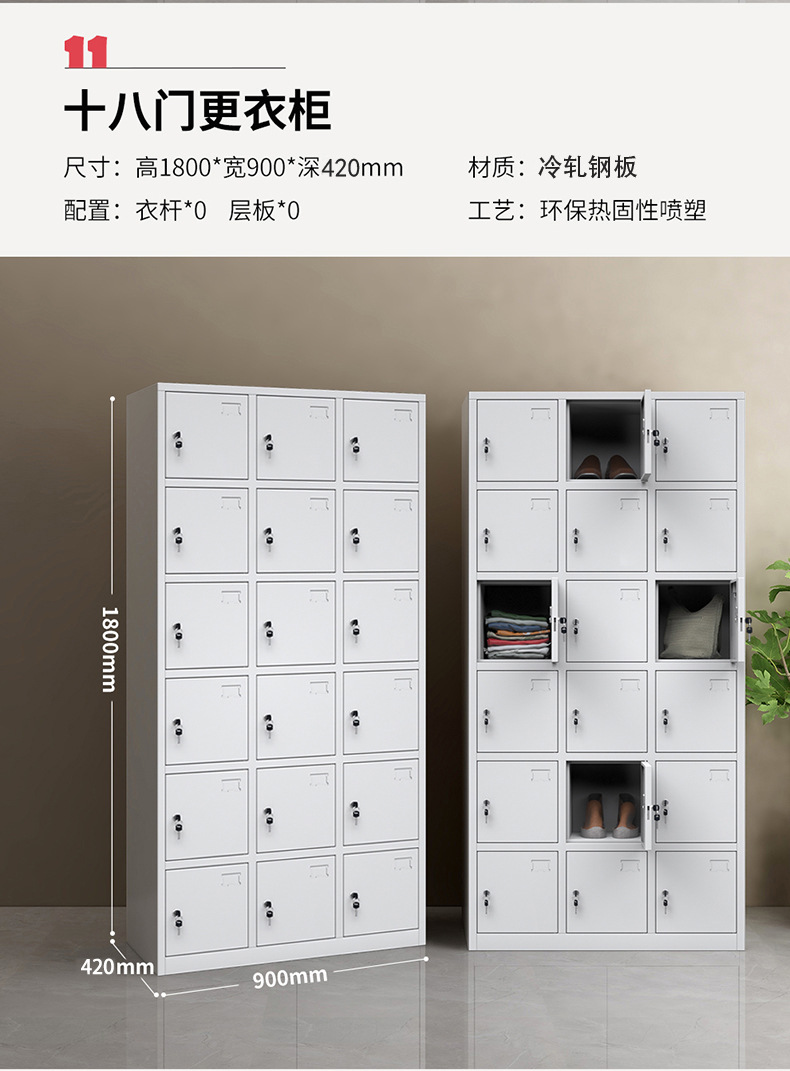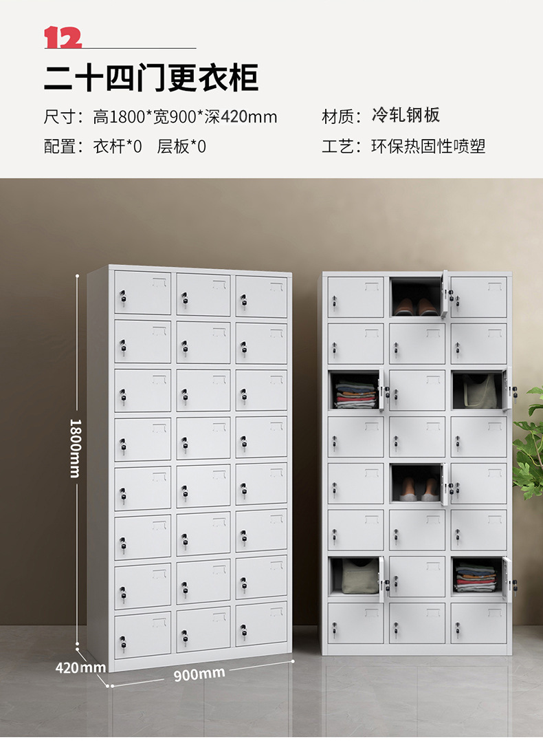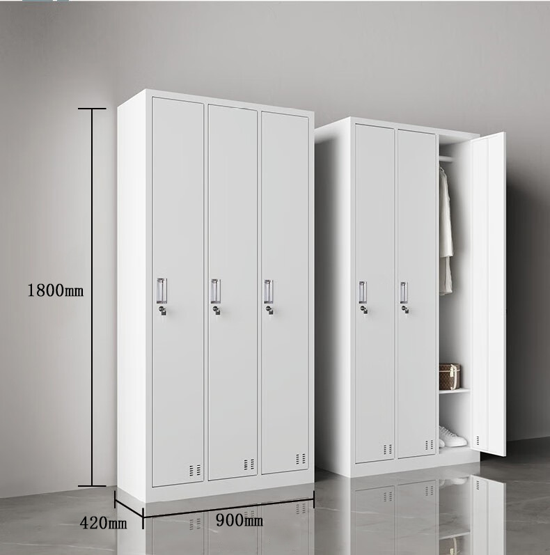 现代简约家用铁皮衣柜衣帽收纳多门带锁钢制储物柜工厂员工更衣柜