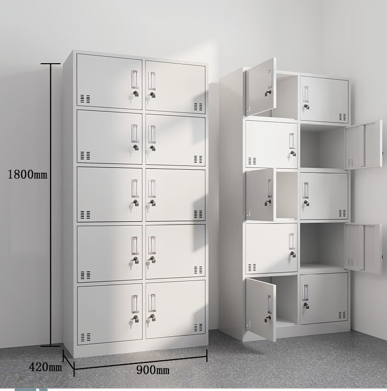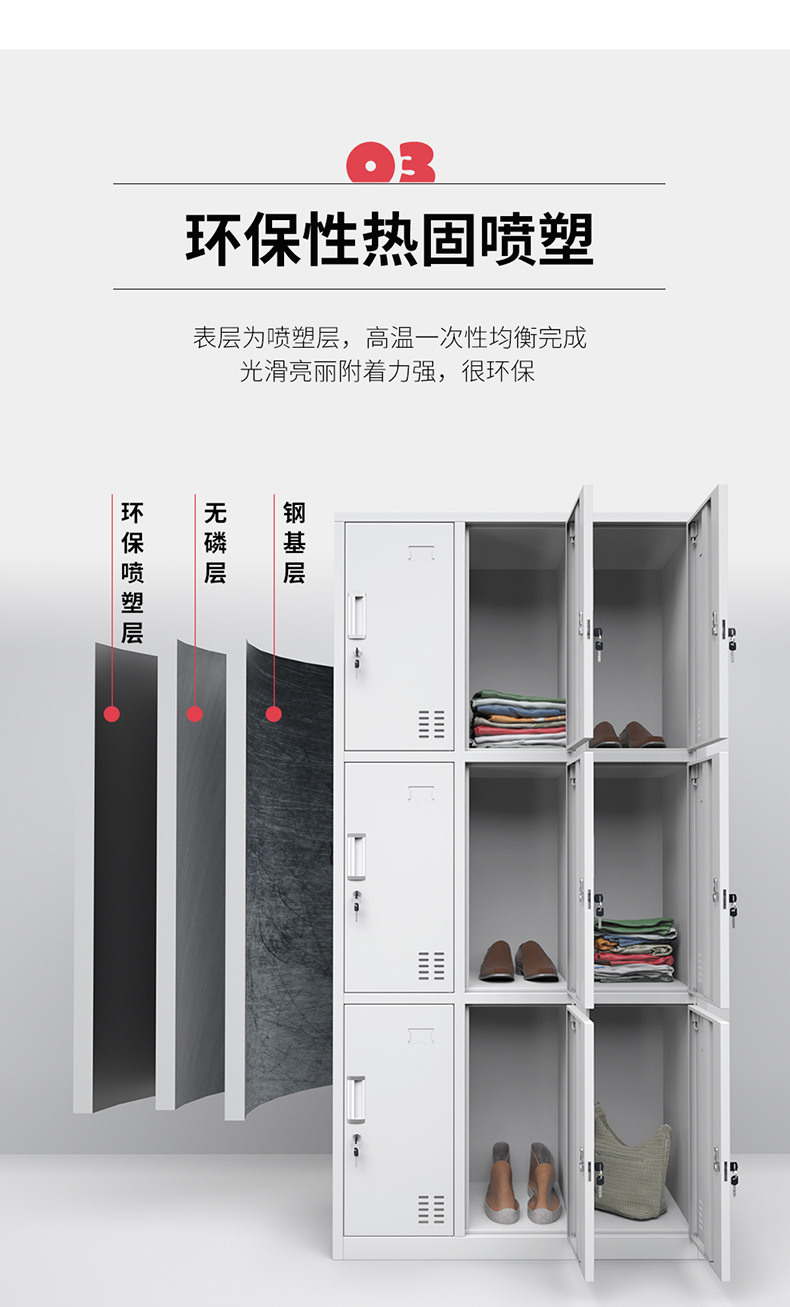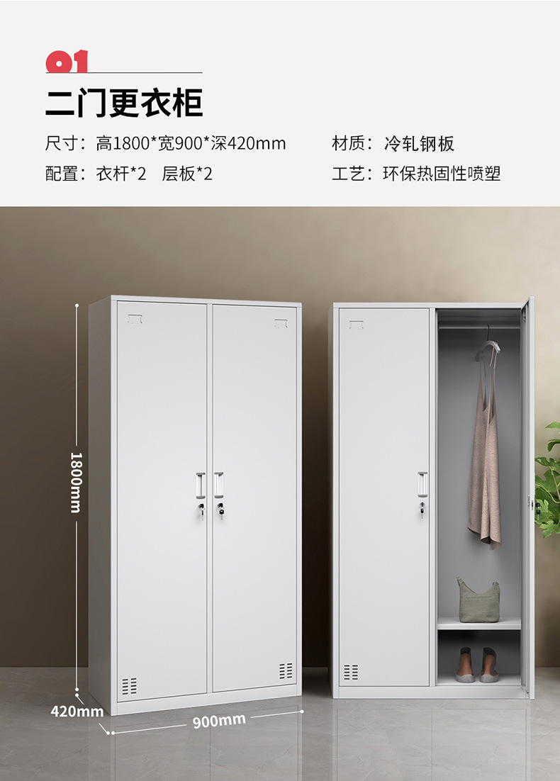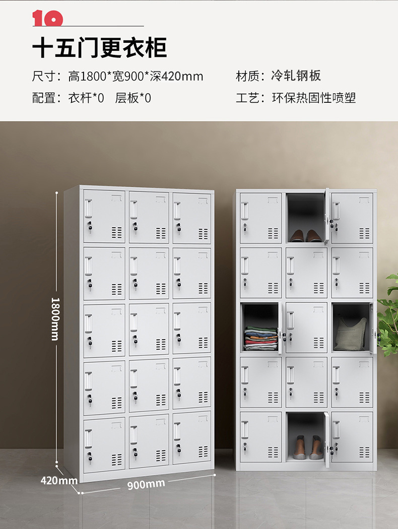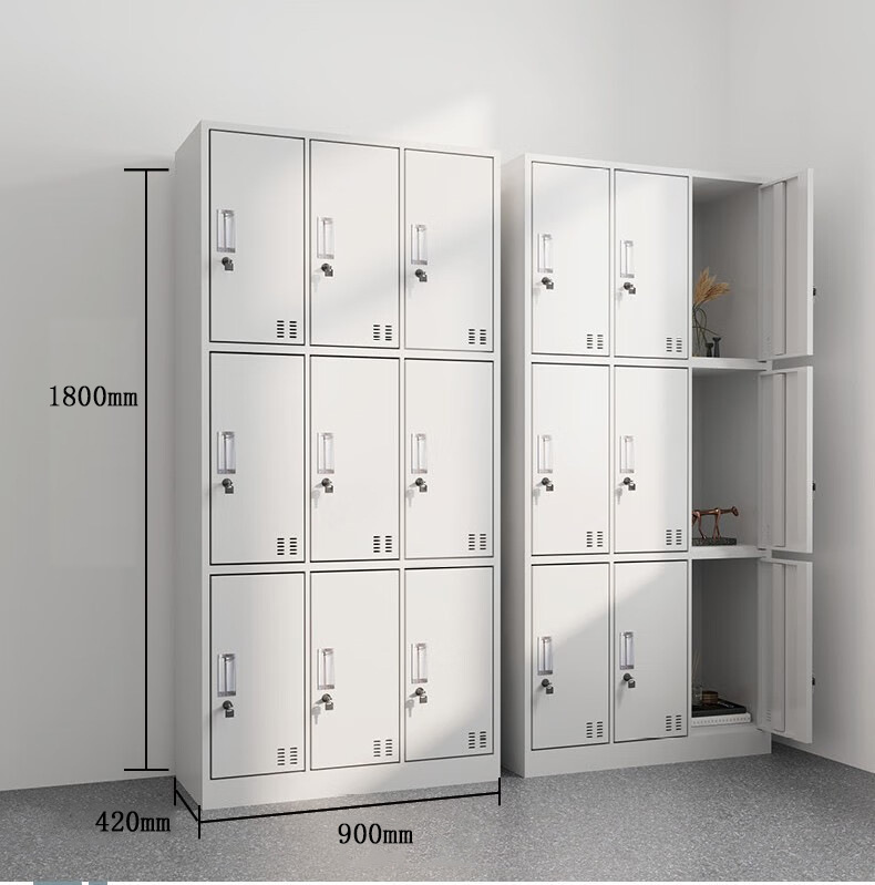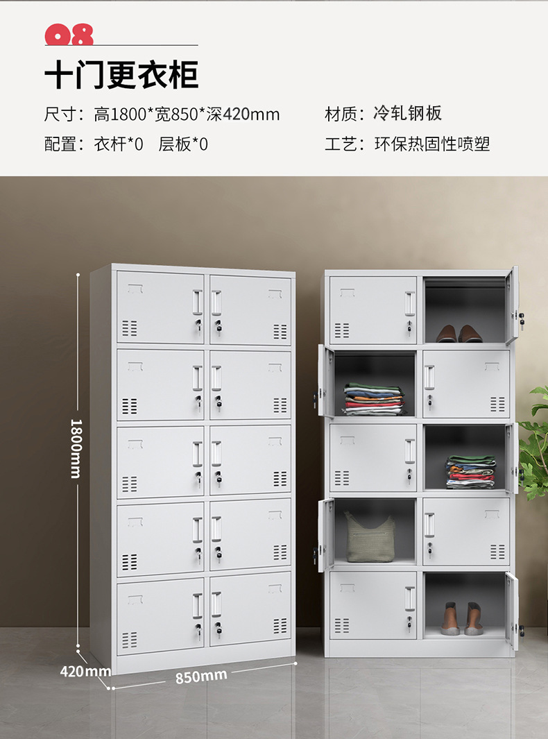 现代简约家用铁皮衣柜衣帽收纳多门带锁钢制储物柜工厂员工更衣柜